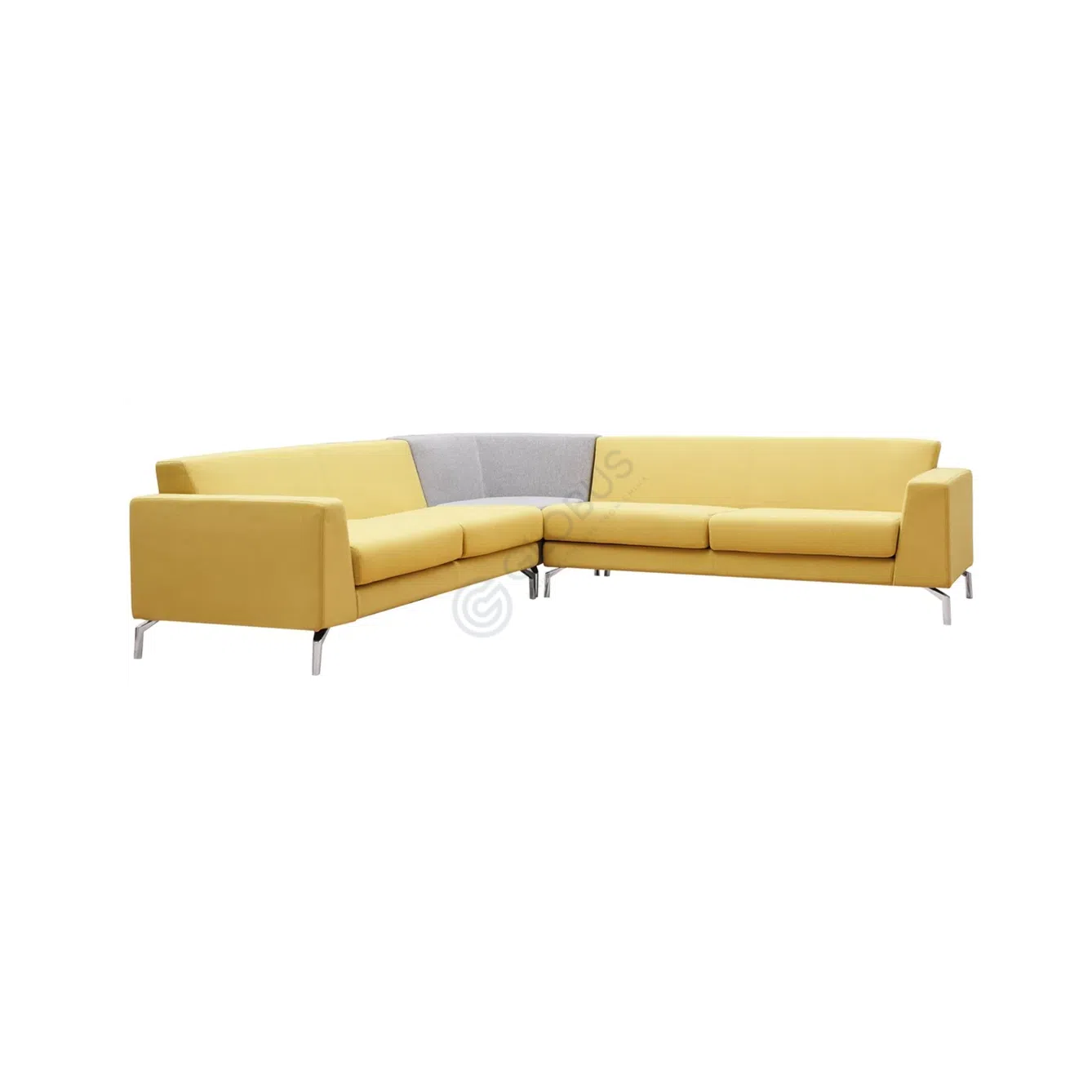 Crafted with a solid wood internal structure, the sofa provides reliable durability and support. It is upholstered in a quality textile, offering a soft and comfortable seating experience that invites relaxation. The design is completed by slender steel legs, which add a touch of contemporary polish and lift the sofa slightly, enhancing its light and airy appearance.