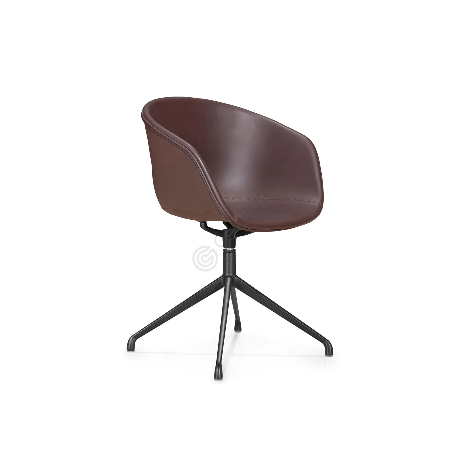 Beneath the inviting seat, a sleek, polished aluminum base provides stable support. Its distinctive four-star design offers a contemporary aesthetic and smooth maneuverability, perfectly complementing the chair's overall modern style.