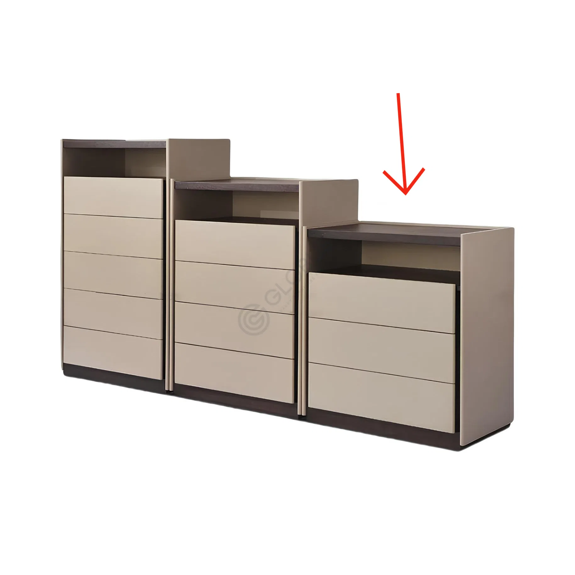 This modern bedside table combines clean lines with a minimalist design, making it a practical addition to any contemporary bedroom. Its compact form contributes to a visually uncluttered space while offering versatile functionality.