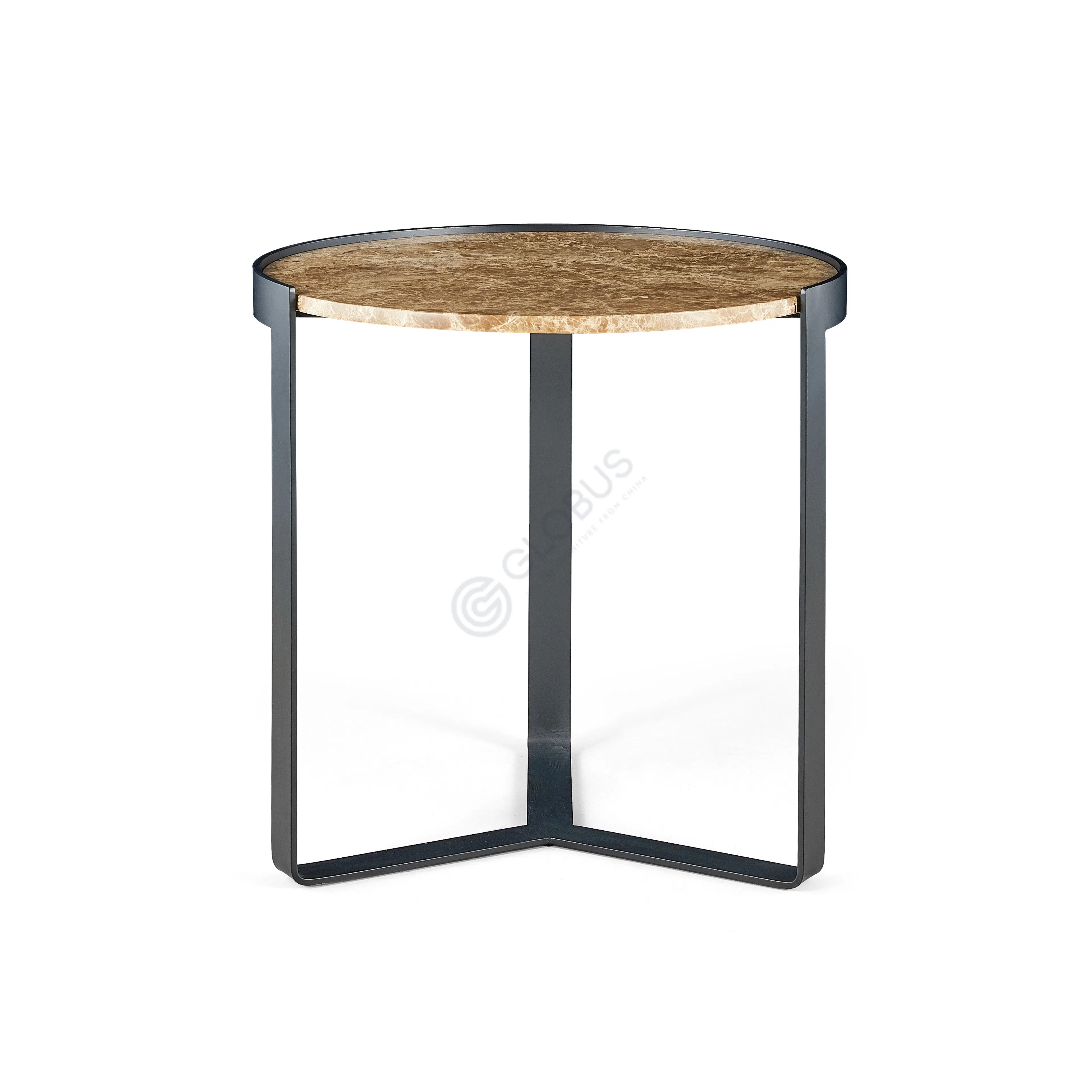 The frame is constructed from durable carbon steel, providing a sleek silhouette and offering a stable base for everyday use. Its matte finish complements the marble top, creating a balanced and harmonious appearance suitable for contemporary interiors.