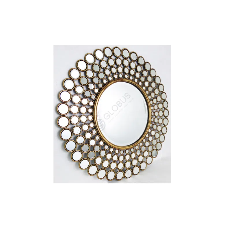 This stunning mirror boasts an exquisite art deco style that is sure to elevate any space. Crafted from durable iron, it is both sturdy and elegant. The beautiful golden hue adds a touch of sophistication to any room, be it a cozy living room or a grand hallway. The mirror's versatile design makes it a perfect addition to a wardrobe or bedroom as well. With its timeless charm and superb quality, this mirror will surely become a beloved centerpiece in your home.