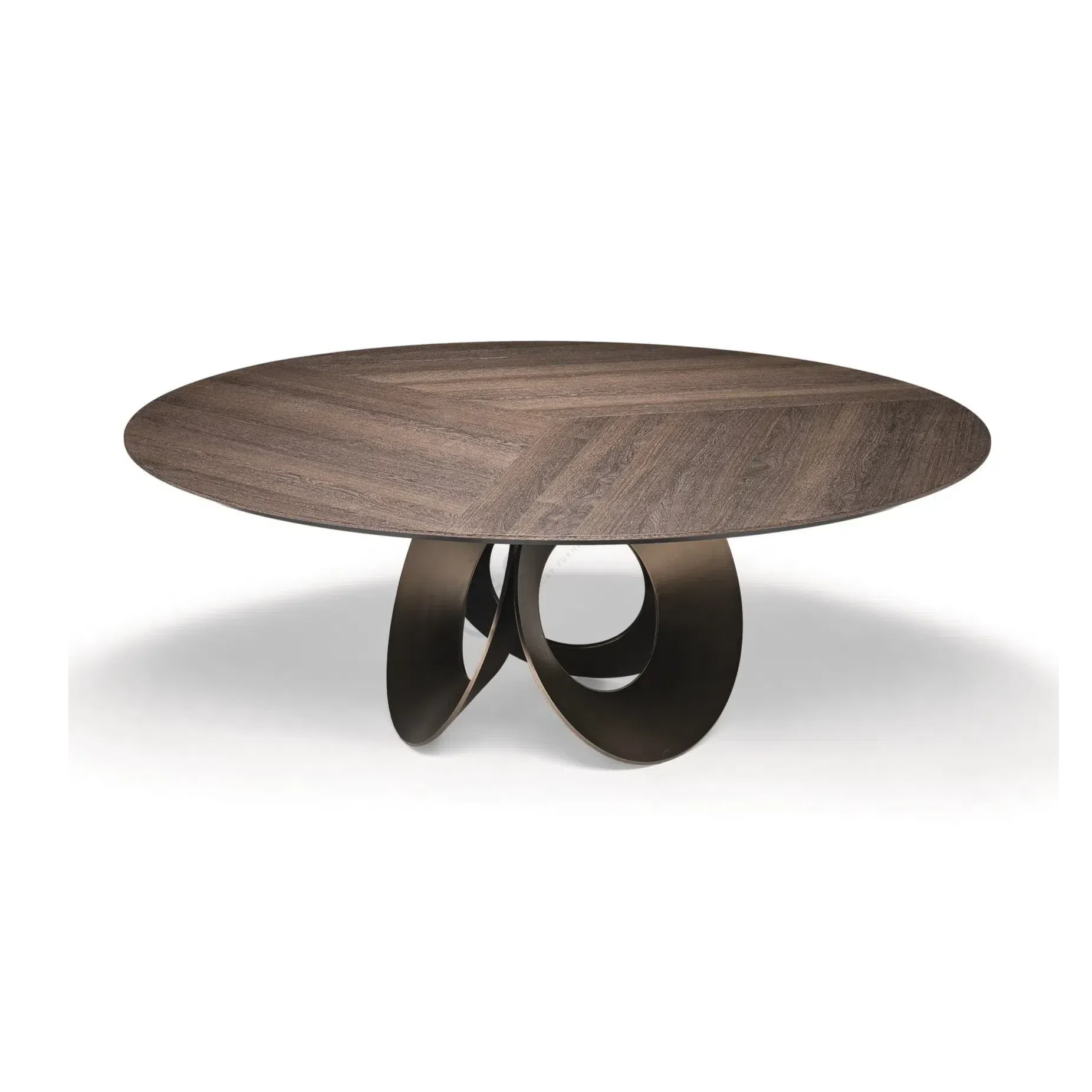 The base design embodies the spirit of Art Deco with its flowing curves and elegant ring accents. This sculptural form provides visual appeal from every angle and adds a touch of glamorous style to any living space. It serves as both a functional surface for everyday use and a captivating piece of furniture.