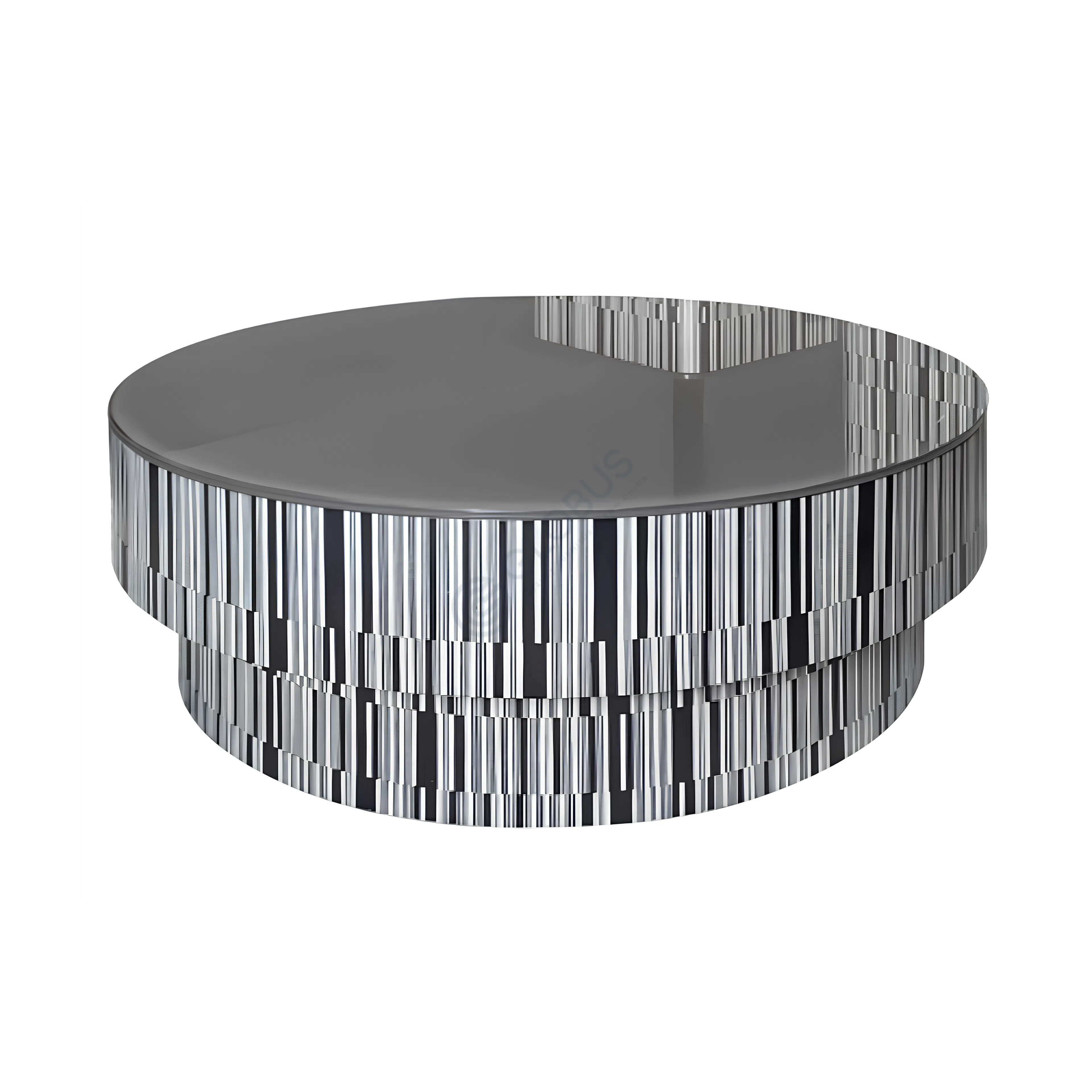 Crafted from durable MDF and finished with a natural veneer, the table showcases a thoughtful blend of refined materials. The patterning on the veneer introduces a contemporary, graphic element, creating visual interest without overwhelming the overall look. This piece feels both sturdy and elegant, suited for those who appreciate detail and craftsmanship in their furniture.