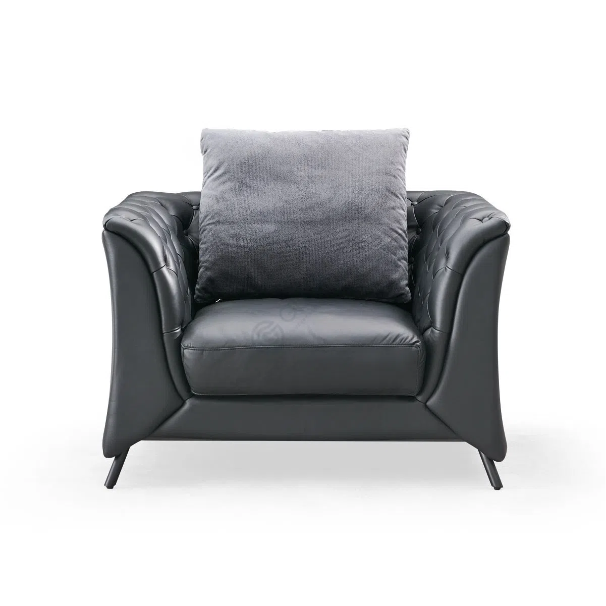 This sofa combines timeless design with premium craftsmanship, making it a sophisticated addition to any living space. Its solid wood frame provides lasting durability, while the high-quality textile upholstery ensures both comfort and elegance. The tufted detailing and sleek silhouette offer a refined and modern aesthetic, perfectly suited for a variety of interiors. With its spacious seating and sturdy construction, this piece is designed to bring style and practicality to your home for years to come.