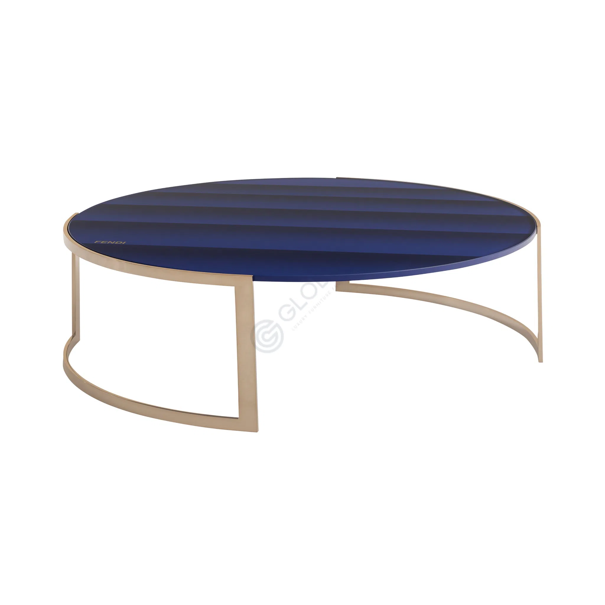 The table features a sleek, circular glass surface, offering a practical space for your curated items. Its distinctive stainless steel base is designed with clean lines and subtle curves, creating an architectural silhouette that is both airy and substantial. The refined finish of the metal adds a sophisticated glow to the piece.