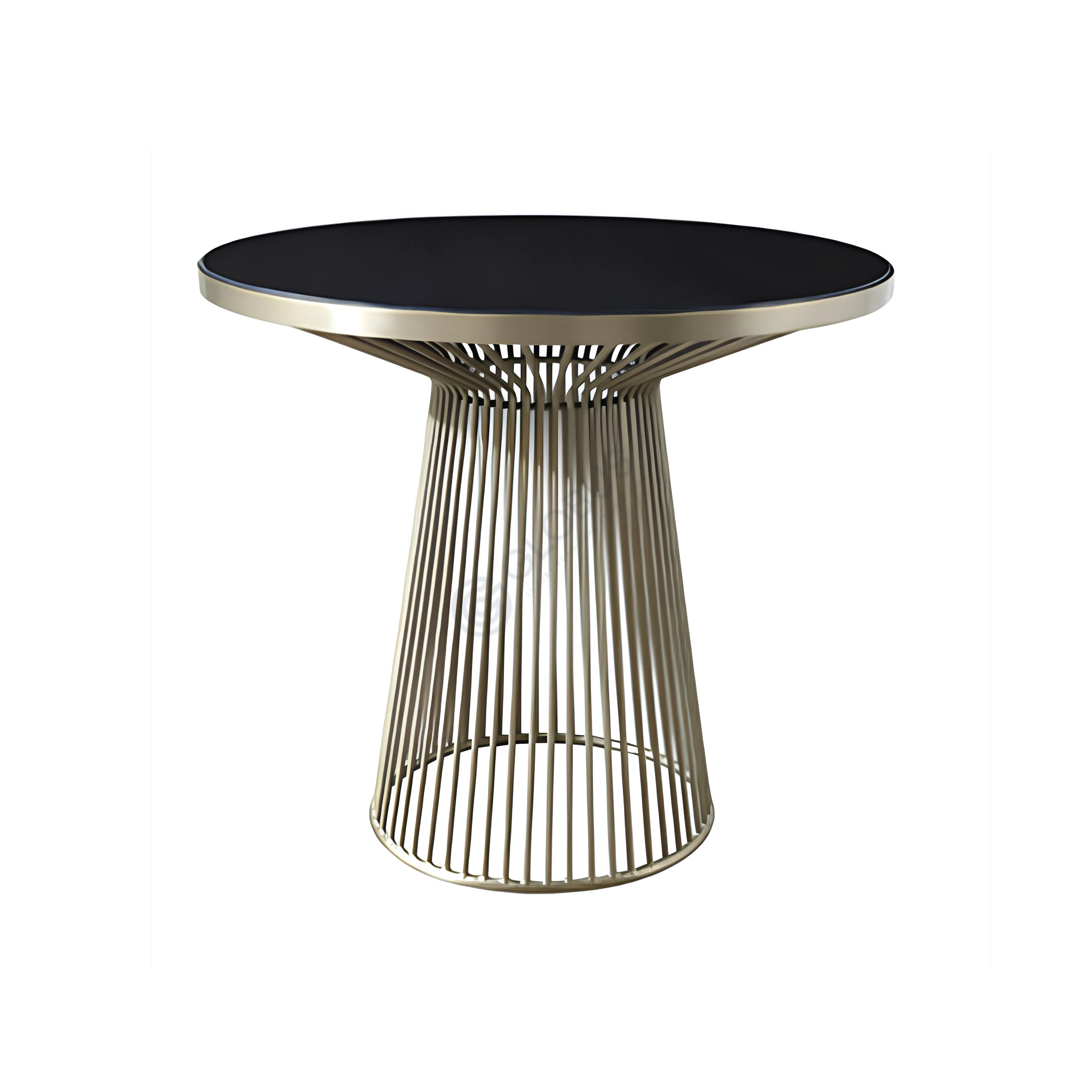 Accent details of polished stainless steel wrap around the base, adding a touch of metallic shimmer and highlighting the table's contemporary design. Supported by an MDF core, this piece combines durable construction with luxurious finishes.