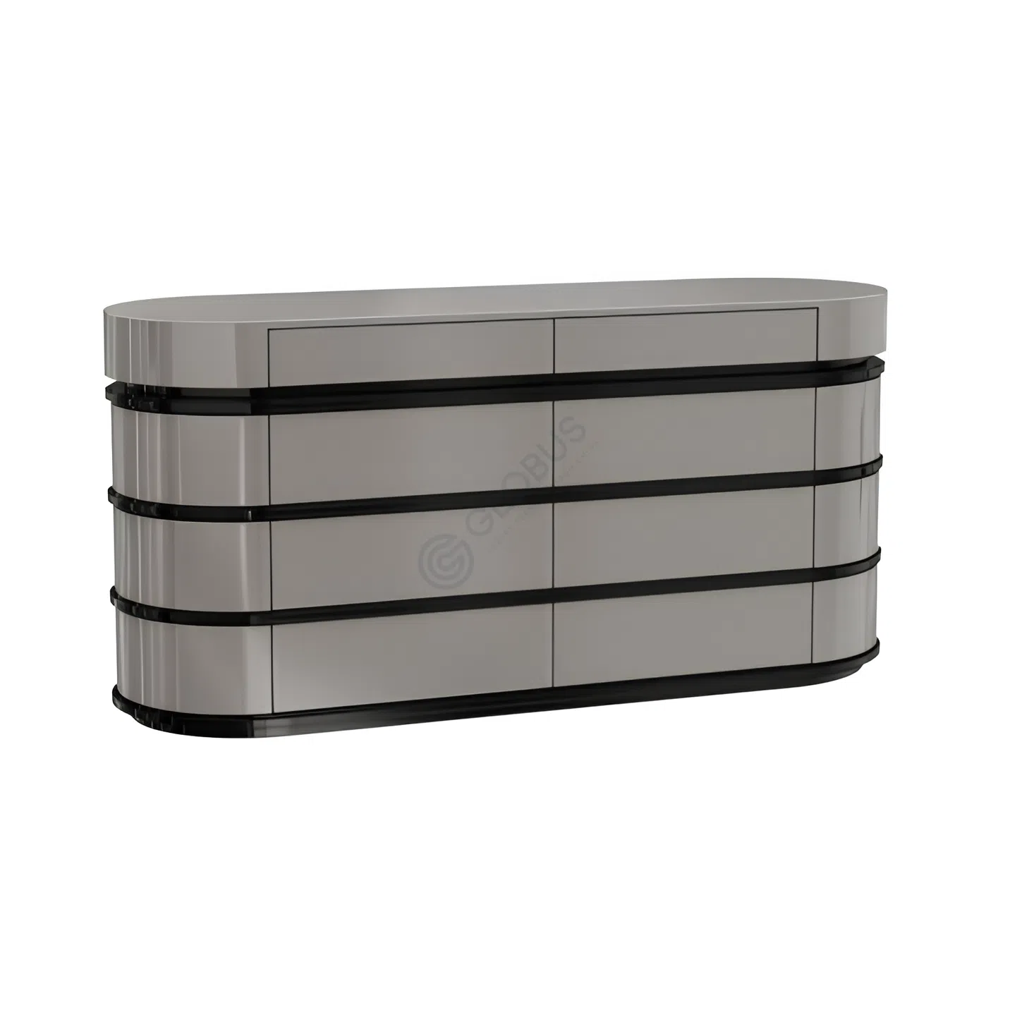 Thoughtfully designed for both style and utility, this piece features multiple spacious drawers providing ample storage. The substantial feel and construction using solid wood ensure durability and lasting quality, reflecting fine craftsmanship. Subtle dark lines frame the drawers, adding visual interest and highlighting the minimalist aesthetic.