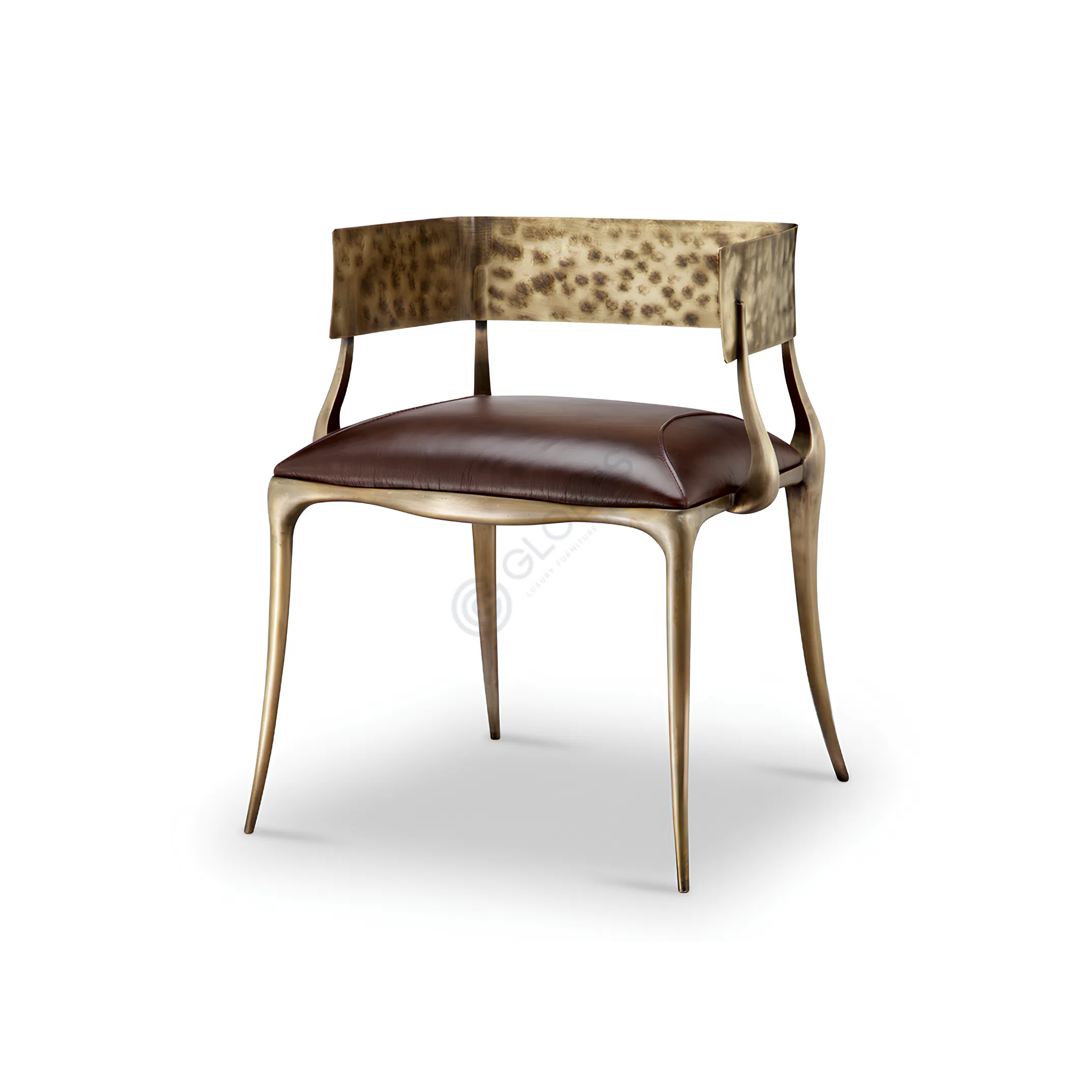 A sculptural copper frame with a fluid, wavy profile outlines a dark natural-veneer sideboard, blending modern clarity with an Art Deco accent. The warm patinated copper forms slender, splayed legs and a continuous silhouette around four flush doors, finished with streamlined metal pulls.