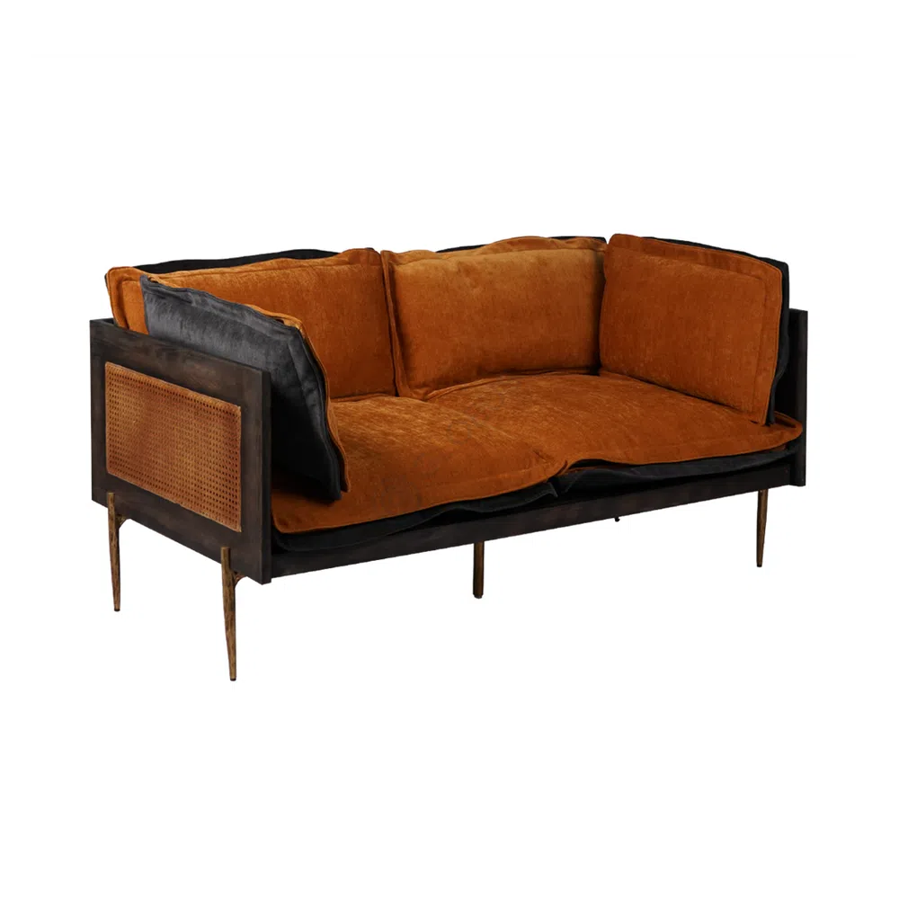 Carefully crafted for both style and support, the wide seat and plush backrest are balanced by straight, architectural lines and open rattan panels on the sides. The iron legs in a brushed finish offer subtle industrial character, enhancing the loft-inspired aesthetic while ensuring lasting stability.