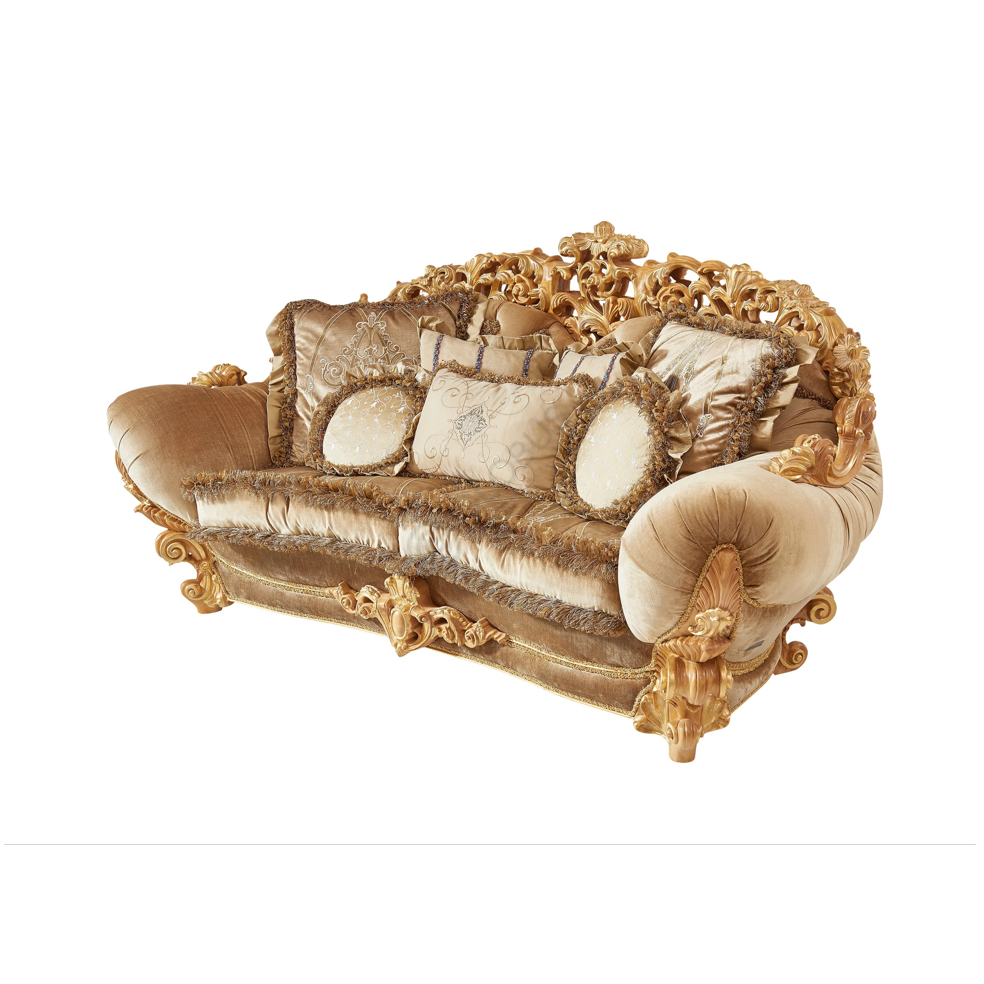 This sofa embodies the luxurious spirit of Baroque and Rococo design. Its generous form and detailed craftsmanship create a focal point of classic elegance, perfectly suited for a distinguished living room.