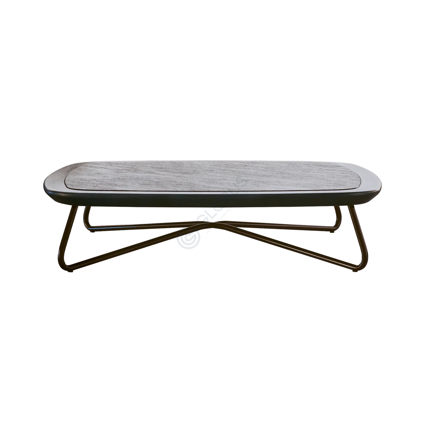 The combination of materials and the clean lines define its modern style. This sofa is designed not just for comfort but also to complement the natural beauty of its outdoor environment, creating a refined space for relaxation.