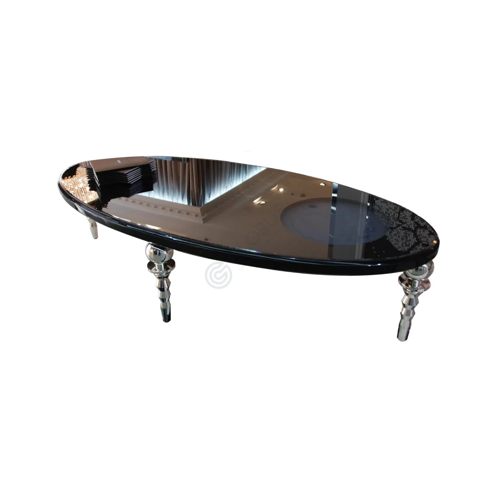 Perfectly sized to accompany a sofa or armchair, this elegant table provides a stylish surface for drinks, books, or decorative objects in a living room. Its striking silhouette and rich finish add a sophisticated focal point to any seating arrangement, bringing a touch of classic glamour to the space.
