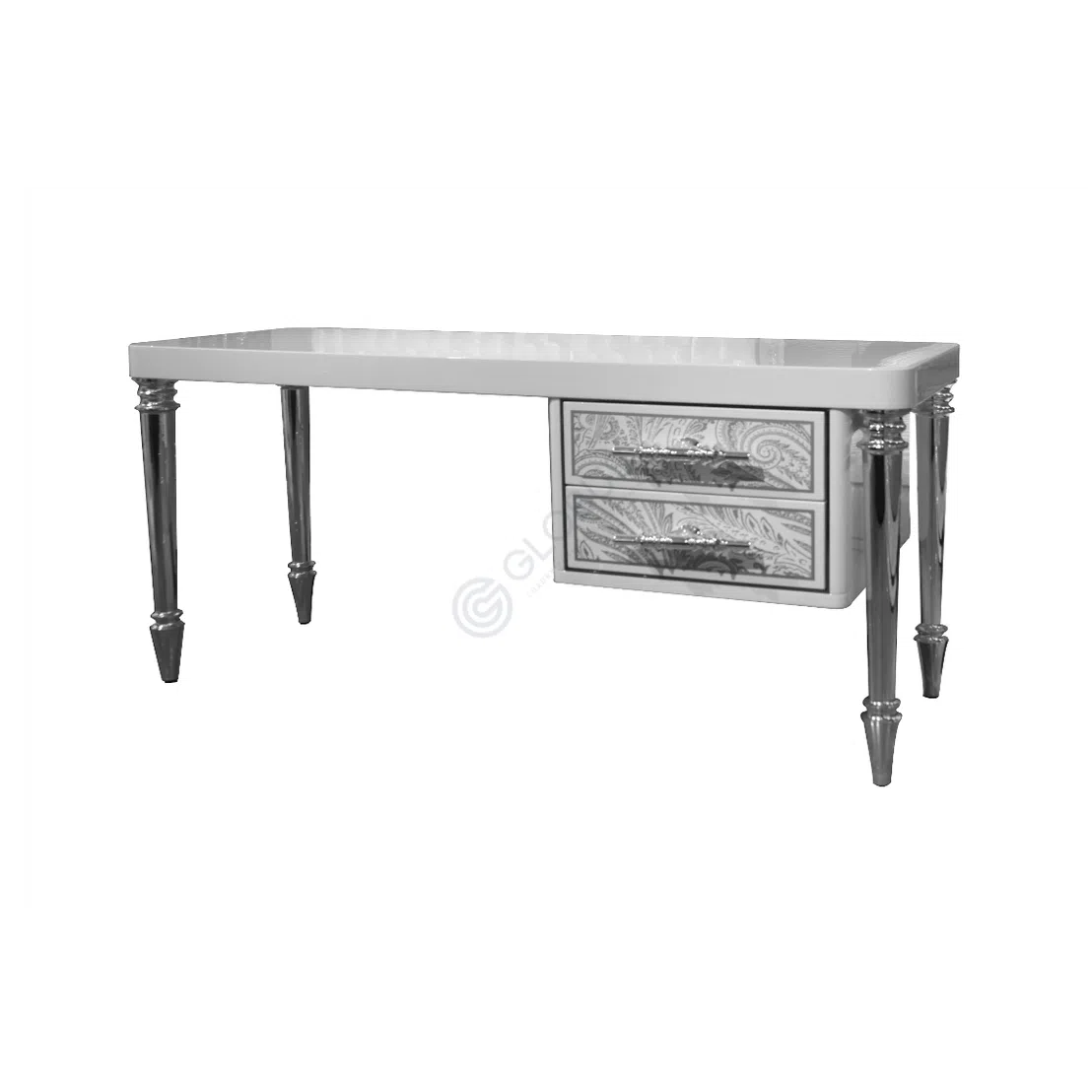This elegant side table effortlessly combines art deco-inspired design with a sturdy metal construction. With its sleek and captivating aesthetic, it beautifully complements any living room decor. Crafted with attention to detail, this side table is both functional and visually appealing, offering a stylish surface for your essentials. Elevate your living space with this timeless piece.