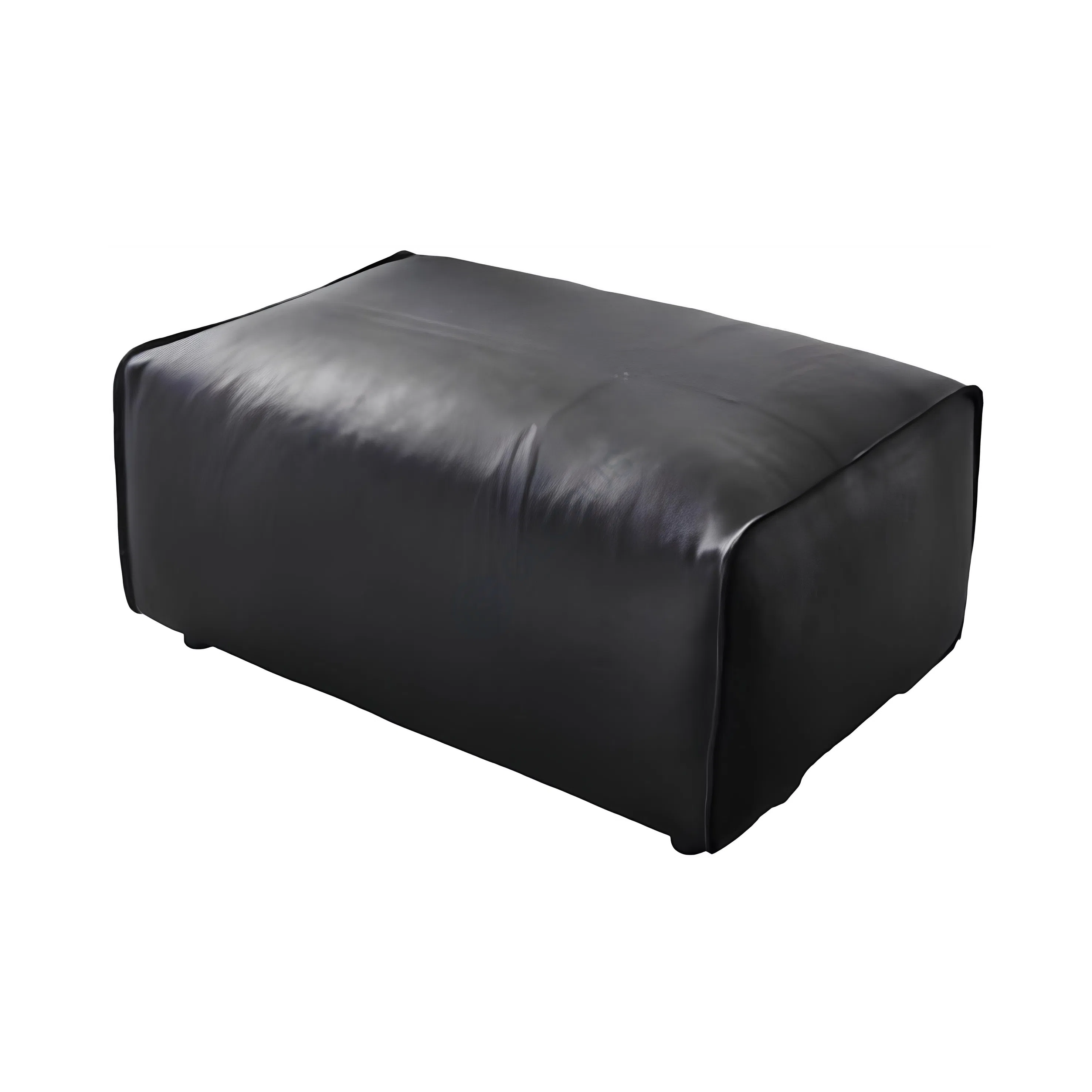 This modern sofa presents a clean and minimalist profile, upholstered in premium leather. Its design features distinct, generously padded cushions and strong, rectangular arms, creating a look of understated elegance. The deep tone of the leather adds a touch of sophistication to any living space.