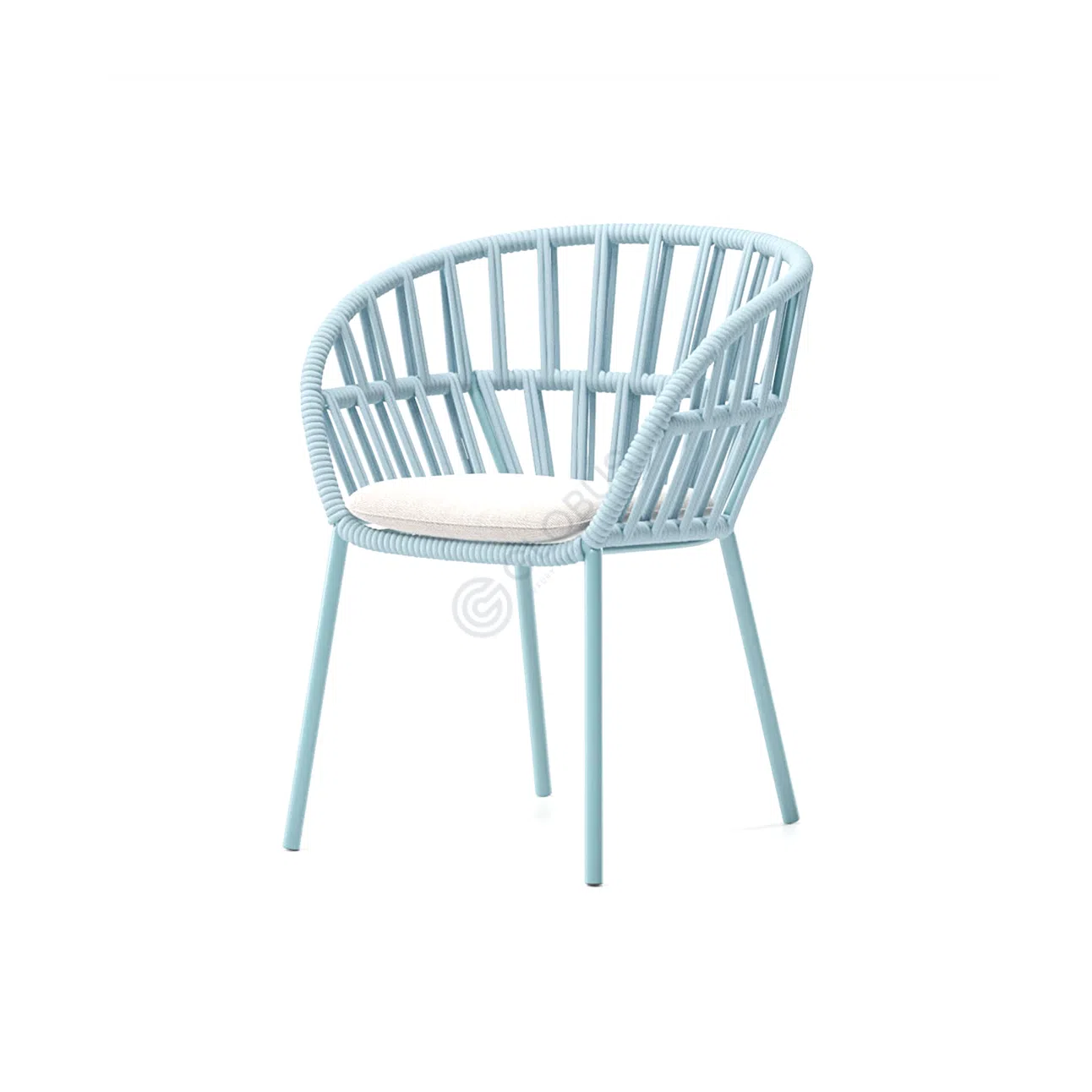 Constructed with durable aluminum and weather-resistant rope, this sofa is designed for longevity and beauty in exterior environments. The materials provide a modern aesthetic that complements various outdoor settings while ensuring stability and resistance to the elements.