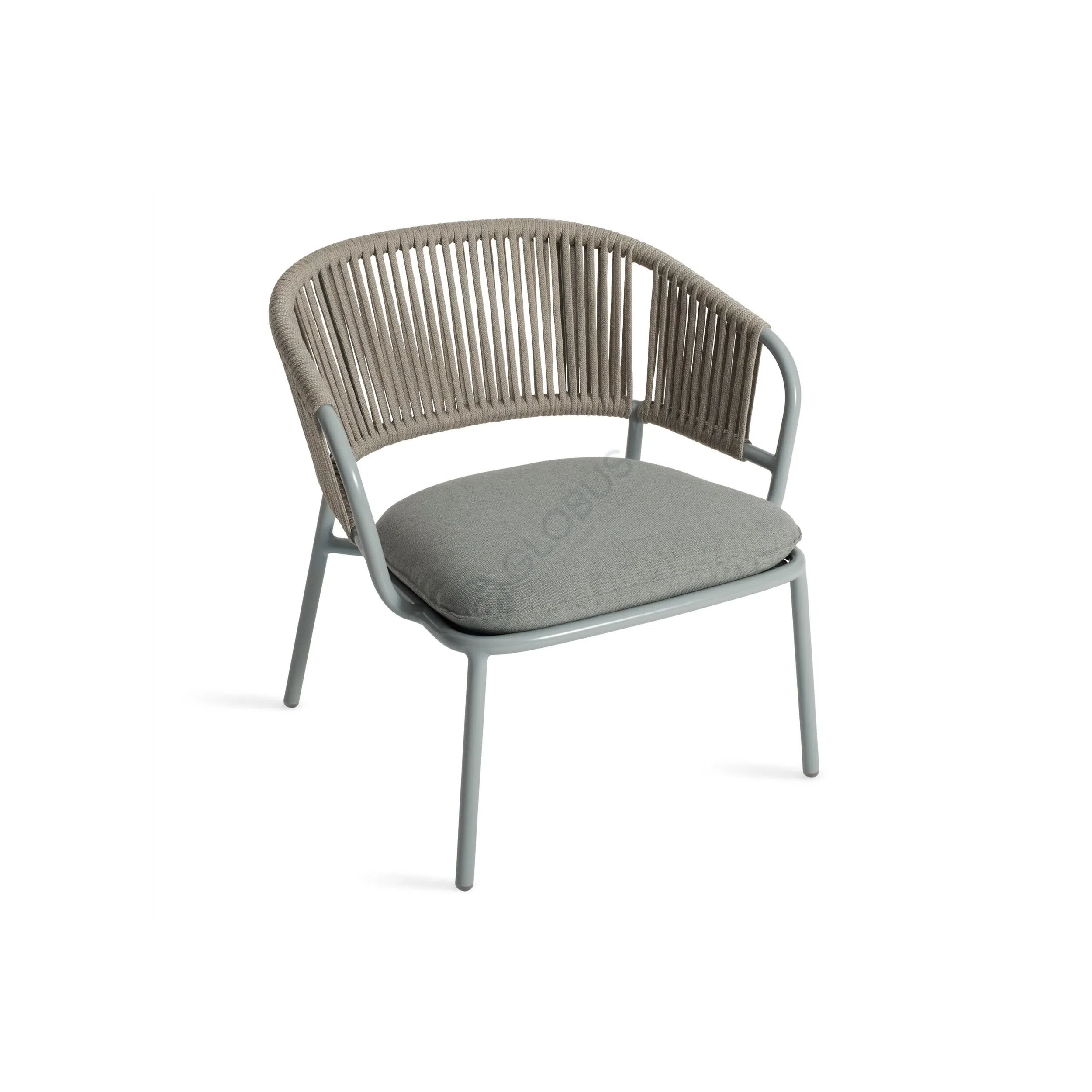 Constructed with durable aluminum for the frame, this piece is built to withstand exterior conditions. The back and armrest showcase a unique rope weave, adding texture and visual interest while providing support. A comfortable seat cushion, upholstered in premium outdoor textile, completes the inviting profile.