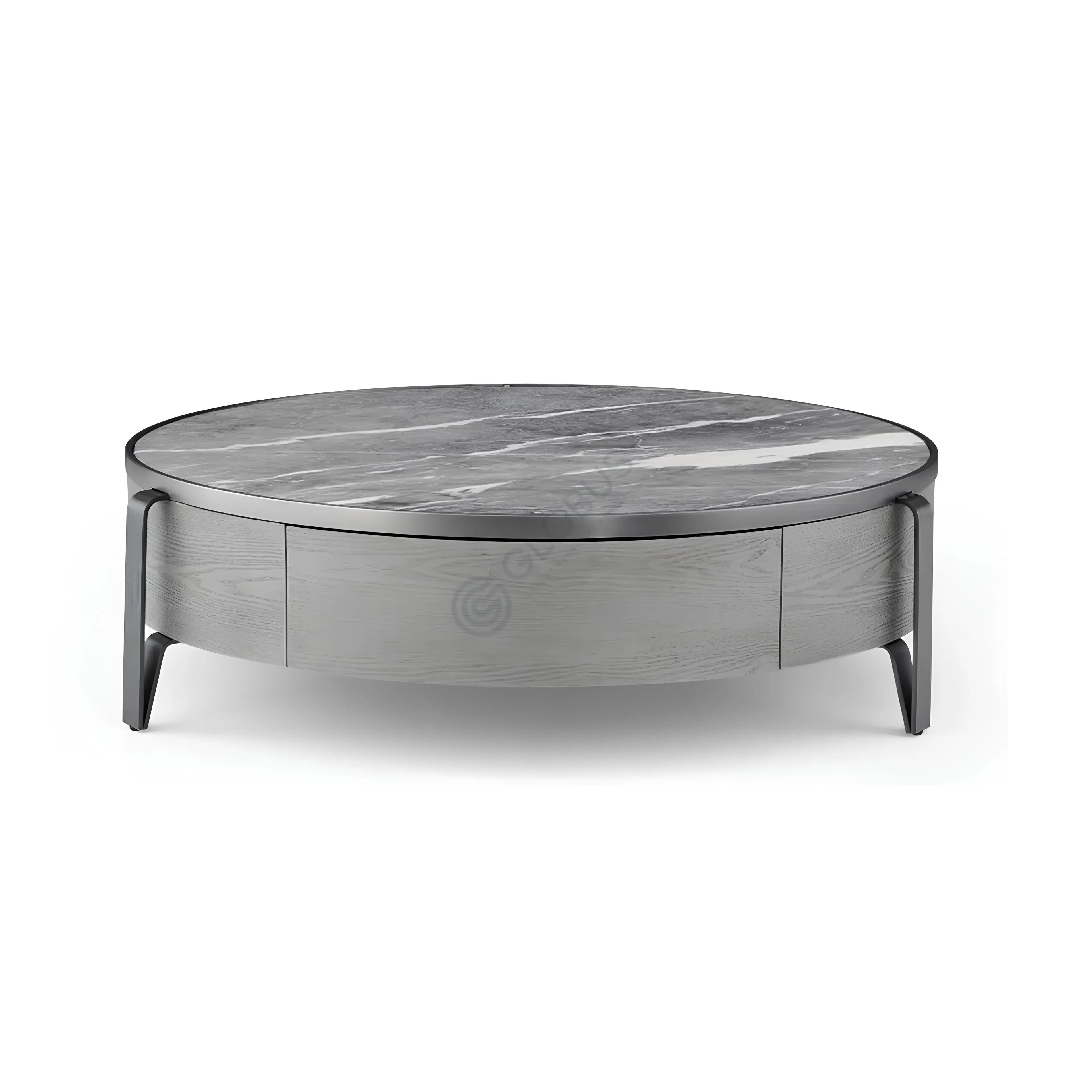 This modern coffee table combines contemporary elegance and functionality, making it ideal for any living room. Its round surface, crafted from durable materials, features a stainless steel frame that pairs seamlessly with its smooth top for a clean and refined aesthetic.