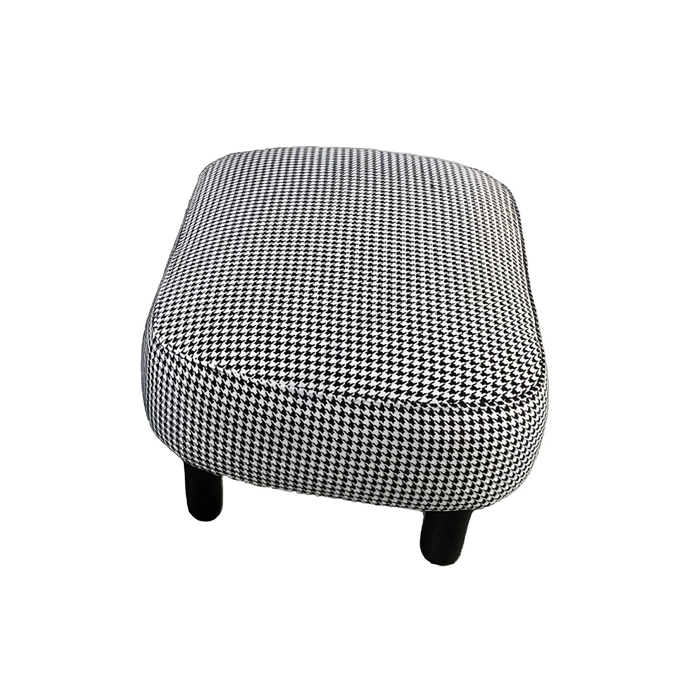 This armchair presents a compelling modern silhouette, distinguished by the confident interplay of its bold upholstery and sculptural frame. The timeless black and white houndstooth pattern envelops the chair’s soft, rounded forms, creating a piece with significant visual character that instantly elevates a living room setting. Its design is both graphic and inviting, making a statement of sophisticated taste.