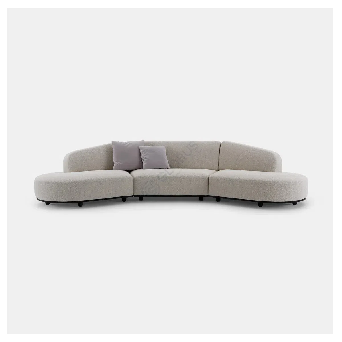 The base is constructed from solid wood, presenting a bold, modern design. It incorporates distinctive arched cutouts that create a sense of structure and visual interest from every angle. The dark finish enhances its geometric form.