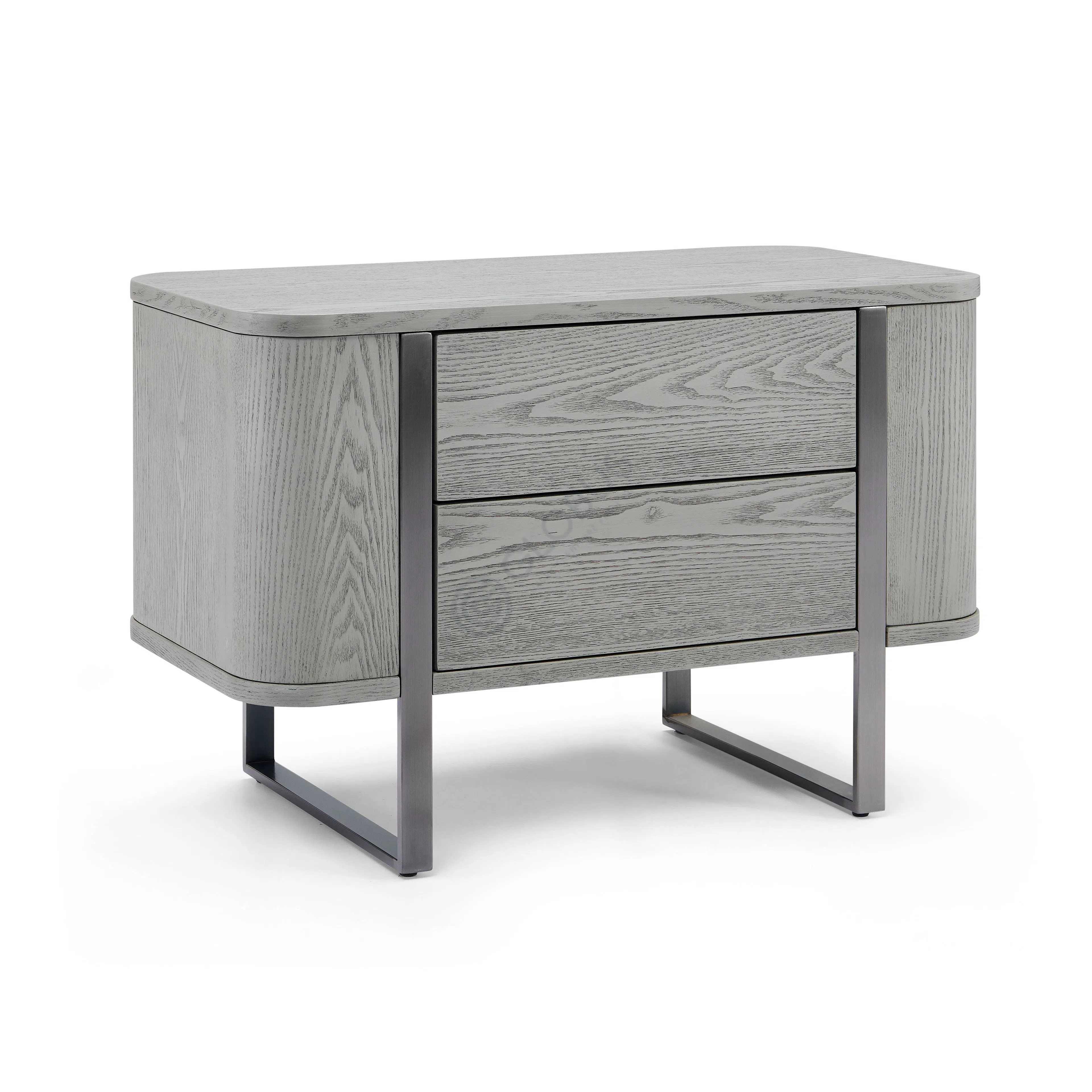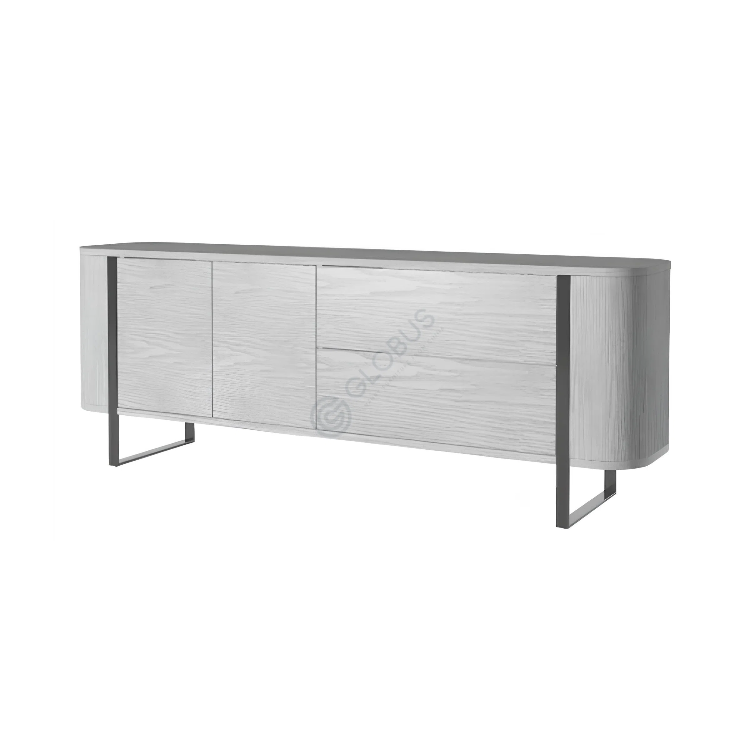 This modern dresser blends functionality with sleek design, making it a versatile addition to any living room, home office, or bedroom. Its compact, rounded rectangular silhouette is crafted using natural veneer and durable MDF, complemented by sturdy plywood details. The soft grain texture of the veneer enhances the clean lines, adding a layer of elegance.