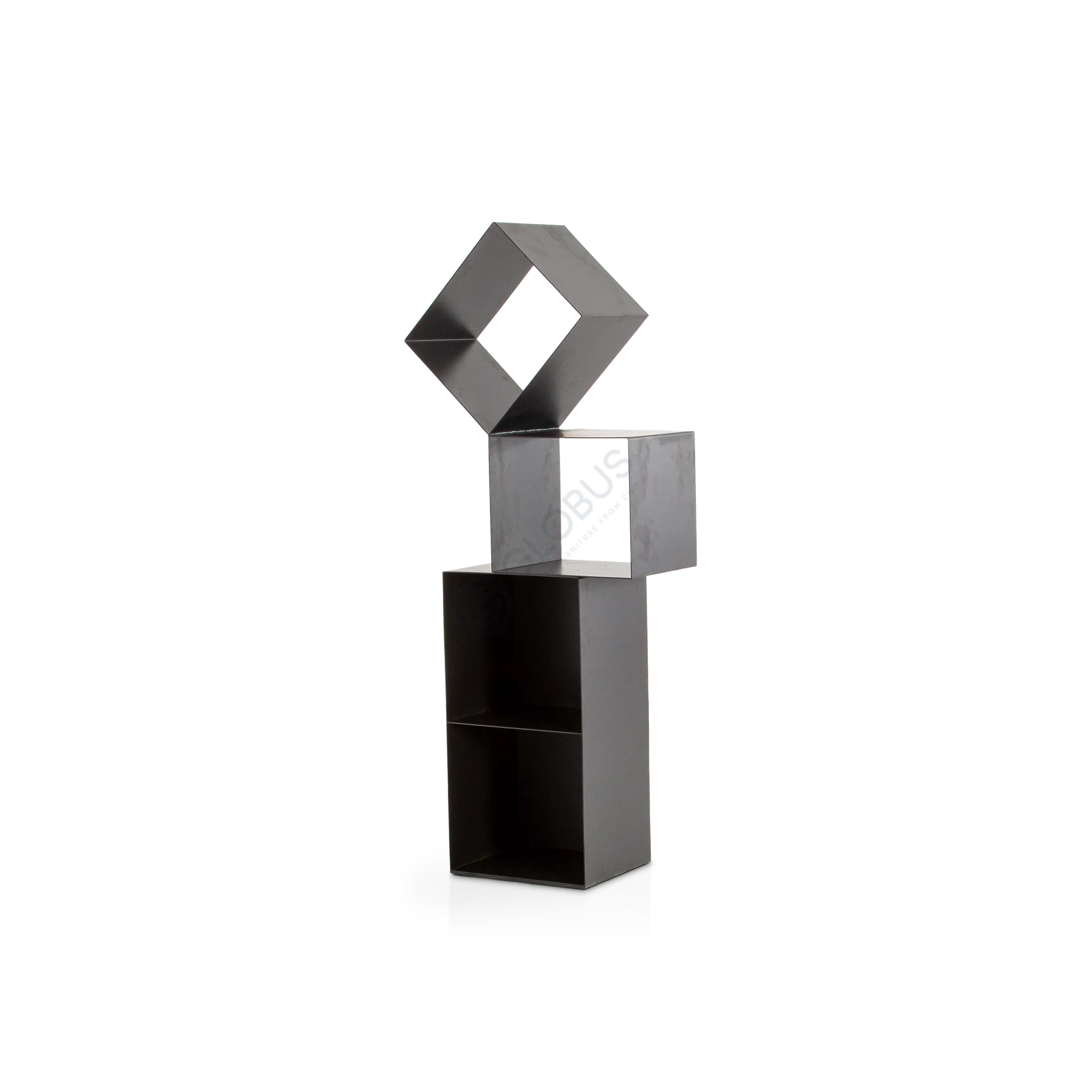 Crafted from sturdy carbon steel, the matte black finish adds a sleek touch and ensures lasting durability. Clean lines and an unconventional form make this bookshelf an appealing option for spaces that embrace contemporary style. Its slim profile allows for flexible placement, whether standing alone as a focal point or paired with complementary pieces for a cohesive look.