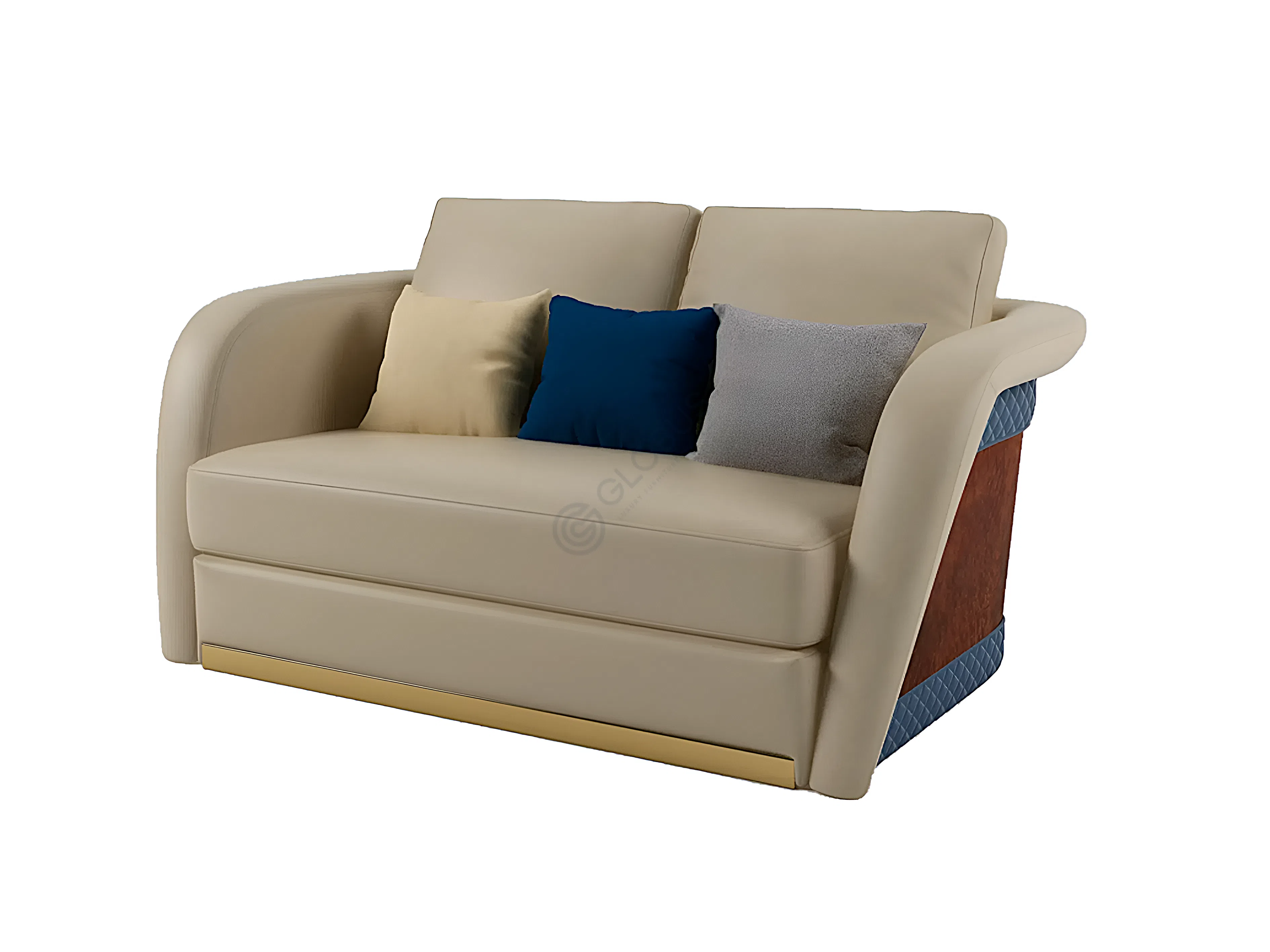 This modern armchair offers a sophisticated presence, designed to enhance the comfort and aesthetic of a living room. Its inviting form and thoughtful details make it a distinctive addition to any contemporary interior.