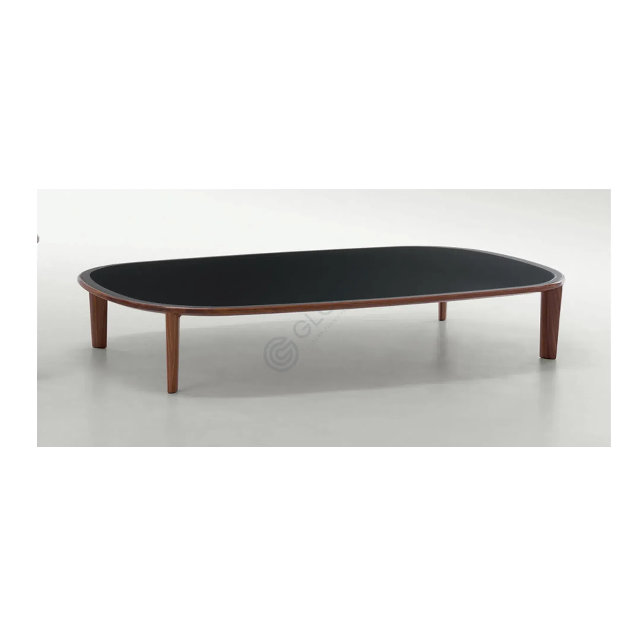 A modern side table designed for the living room, featuring a distinctive rounded square top supported by elegant, tapered legs. Its clean lines and balanced proportions create a sense of contemporary sophistication.