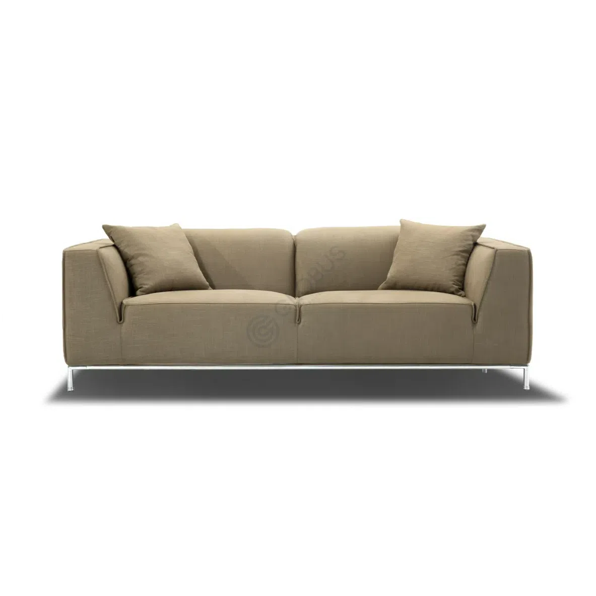 Supporting the substantial form are sleek stainless steel legs. This detail lifts the sofa visually, contributing to its modern lightness while ensuring robust support. The combination of materials and design creates a piece that is both visually appealing and exceptionally comfortable, making it a central element for relaxation and gathering in a modern home.