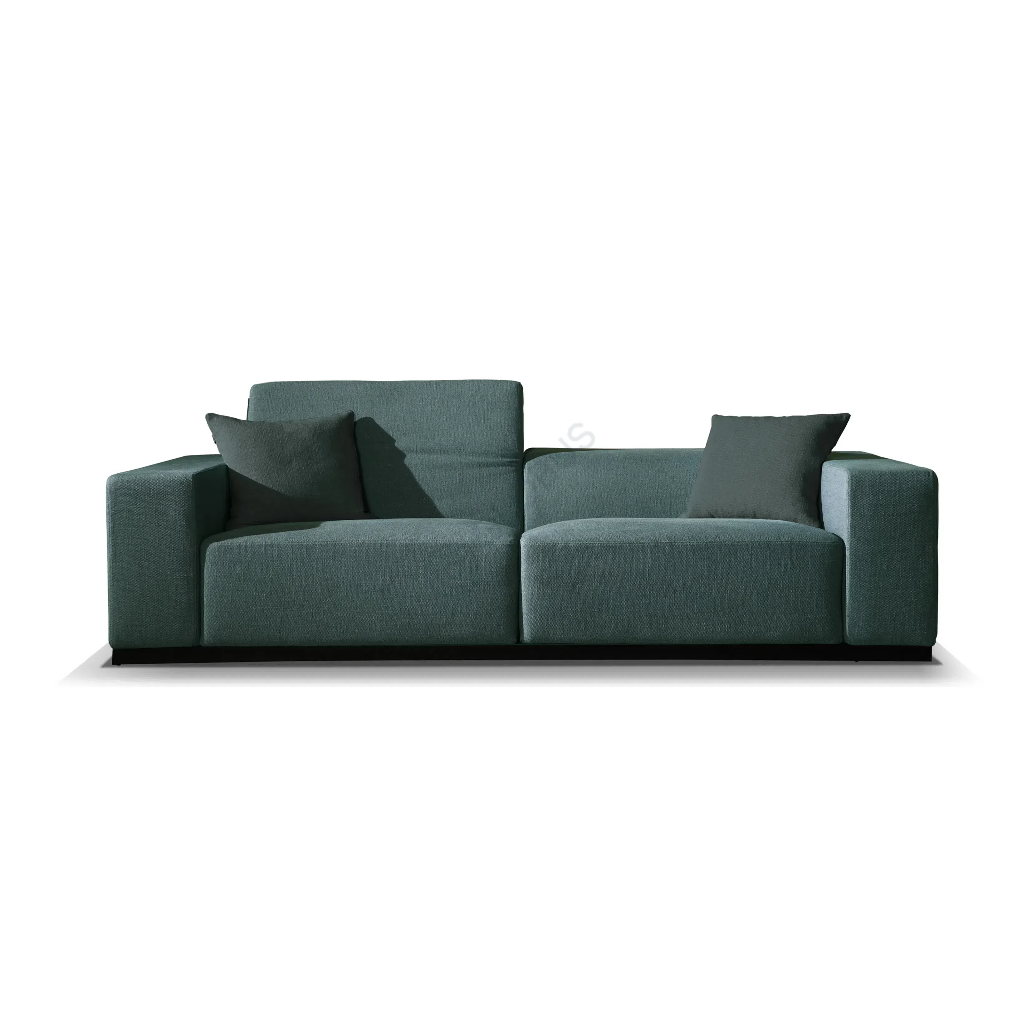 Underneath the inviting cushions lies a sturdy structure built with solid wood, ensuring lasting stability. Subtle details like a streamlined steel base or internal frame elements support the sofa's low-profile design, anchoring it gracefully in your space. This combination of materials and thoughtful construction provides both comfort and durability.