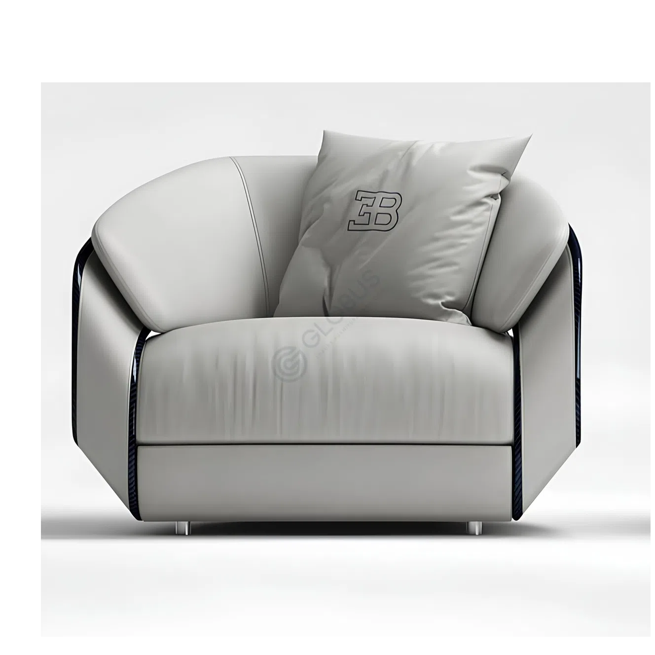 Designed to be a centerpiece in a modern living room, this armchair provides a luxurious spot for relaxation. It comes complete with a coordinating cushion, adding an extra touch of style and comfort to its already appealing structure. It is a piece that combines aesthetic appeal with functional elegance.