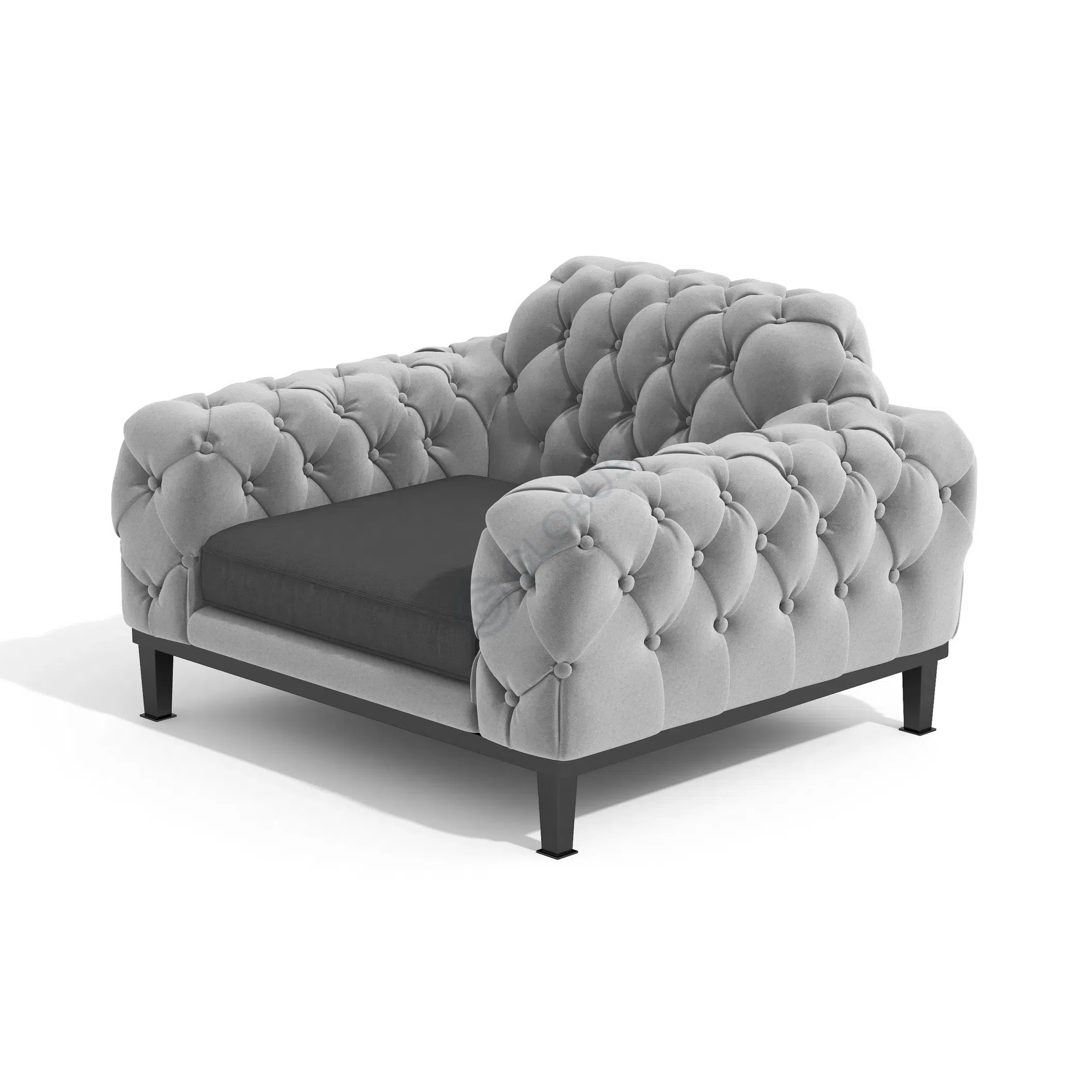 Crafted from quality textile, the pouf combines style and practicality. The detailed tufting highlights the fabric's texture, contributing to its contemporary aesthetic. It's a functional and elegant addition designed to enhance the comfort and look of your chosen space.