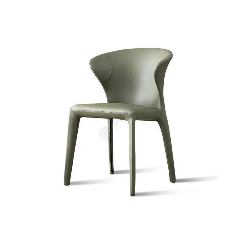This modern piece integrates seamlessly into sophisticated interiors. The supportive structure, crafted from durable iron, is expertly concealed beneath the smooth leather finish. It offers comfortable seating while maintaining a light and airy presence, making it an ideal choice for enhancing the dining experience in a dining room or kitchen space.