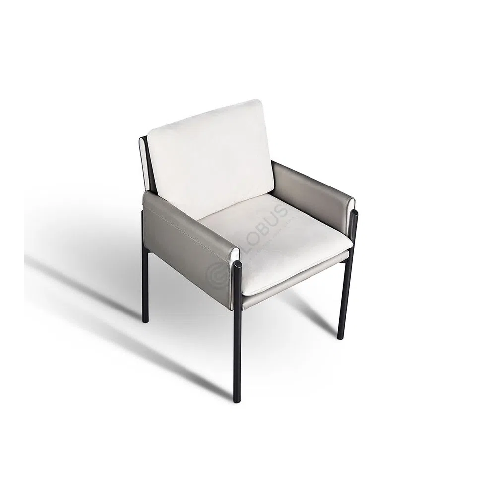 Crafted with precision, the cabinet combines premium materials for both beauty and durability. A luxurious sintered stone top, with its distinctive dark green veining, forms a captivating centerpiece. The body is enveloped in smooth microfiber leather, presenting a gentle two-tone palette of soft beige and a deeper brown. Supported by slender stainless steel legs, the piece maintains an elegant, elevated posture. Inside, a sturdy plywood structure ensures lasting quality.