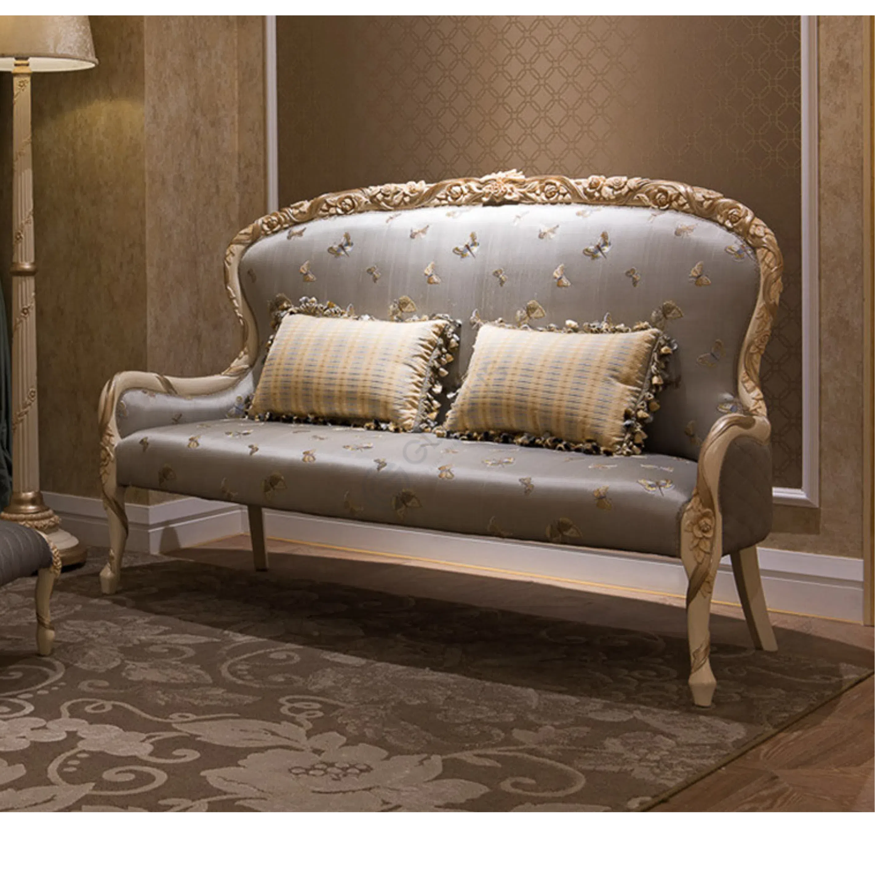 Crafted from solid wood and quality textile, this pairing is an ideal addition to a living room seeking a blend of comfort, enduring style, and artisanal detail characteristic of European classic furniture.