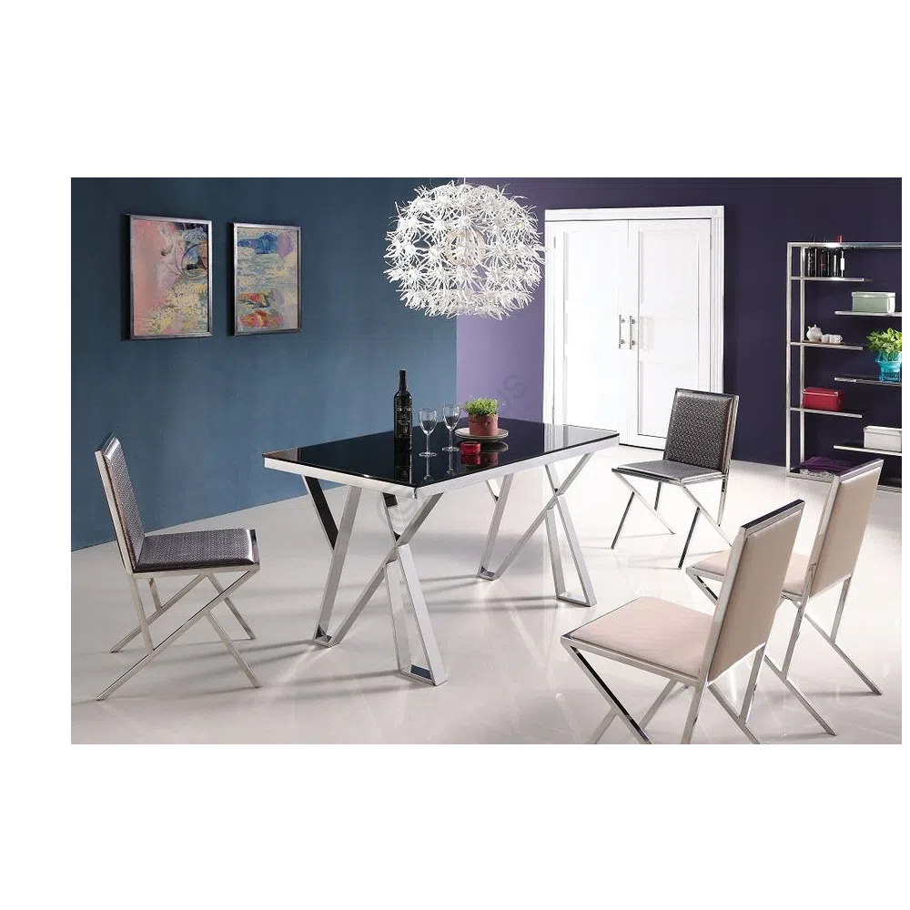 This dining chair presents a striking silhouette perfect for modern interiors. Its clean lines and polished finish reflect a sophisticated aesthetic, making it a distinguished addition to your dining space or kitchen. Crafted with durable stainless steel and luxurious PU upholstery, it combines lasting quality with contemporary style.