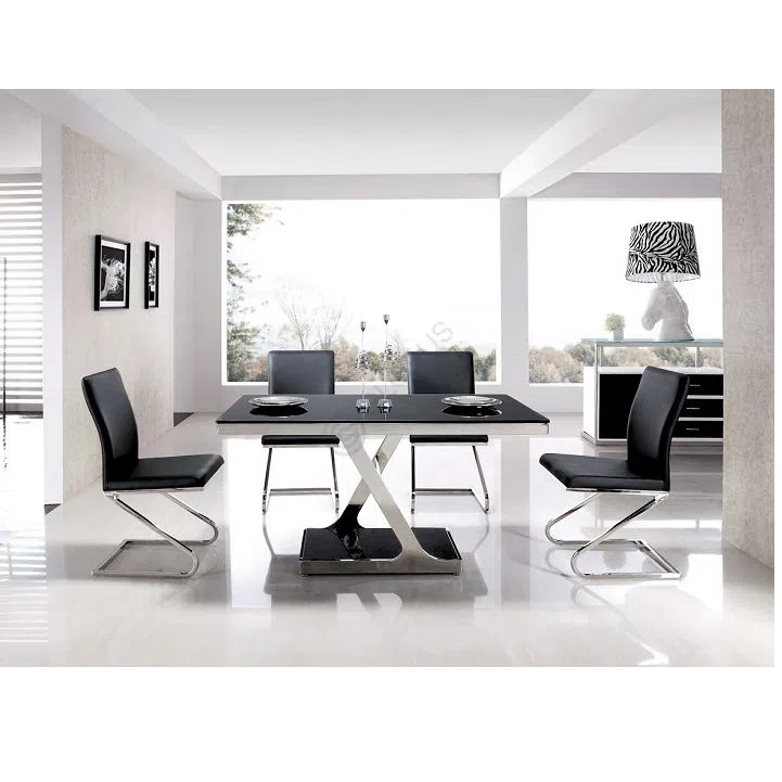 A striking cantilever base, crafted from polished stainless steel, gives the chair its distinctive floating appearance. This sturdy foundation not only provides reliable support but also adds a touch of modern artistry to the overall design. The reflective quality of the steel enhances the chair's light and airy feel.