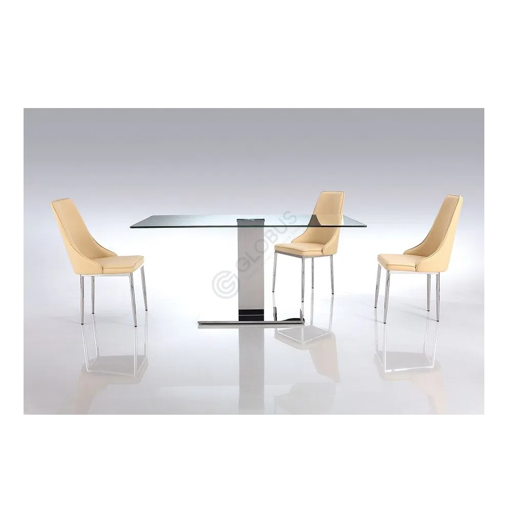 Crafted with quality in mind, the chair utilizes durable PU upholstery, known for its practical nature and smooth finish. This is paired with slender legs constructed from polished stainless steel, which provides a bright, reflective contrast and ensures stability. The combination of materials highlights the chair's modern design principles, offering a blend of style and functionality.