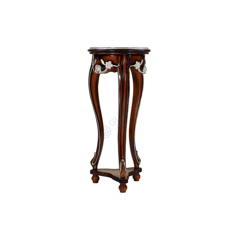 An exquisite bedside table embodies the essence of European classic design. It features a graceful, curved silhouette and a rich, warm wood finish that highlights the natural beauty of the material. The elegant form is complemented by a slightly contoured top and subtly curved legs, creating a look of timeless sophistication.