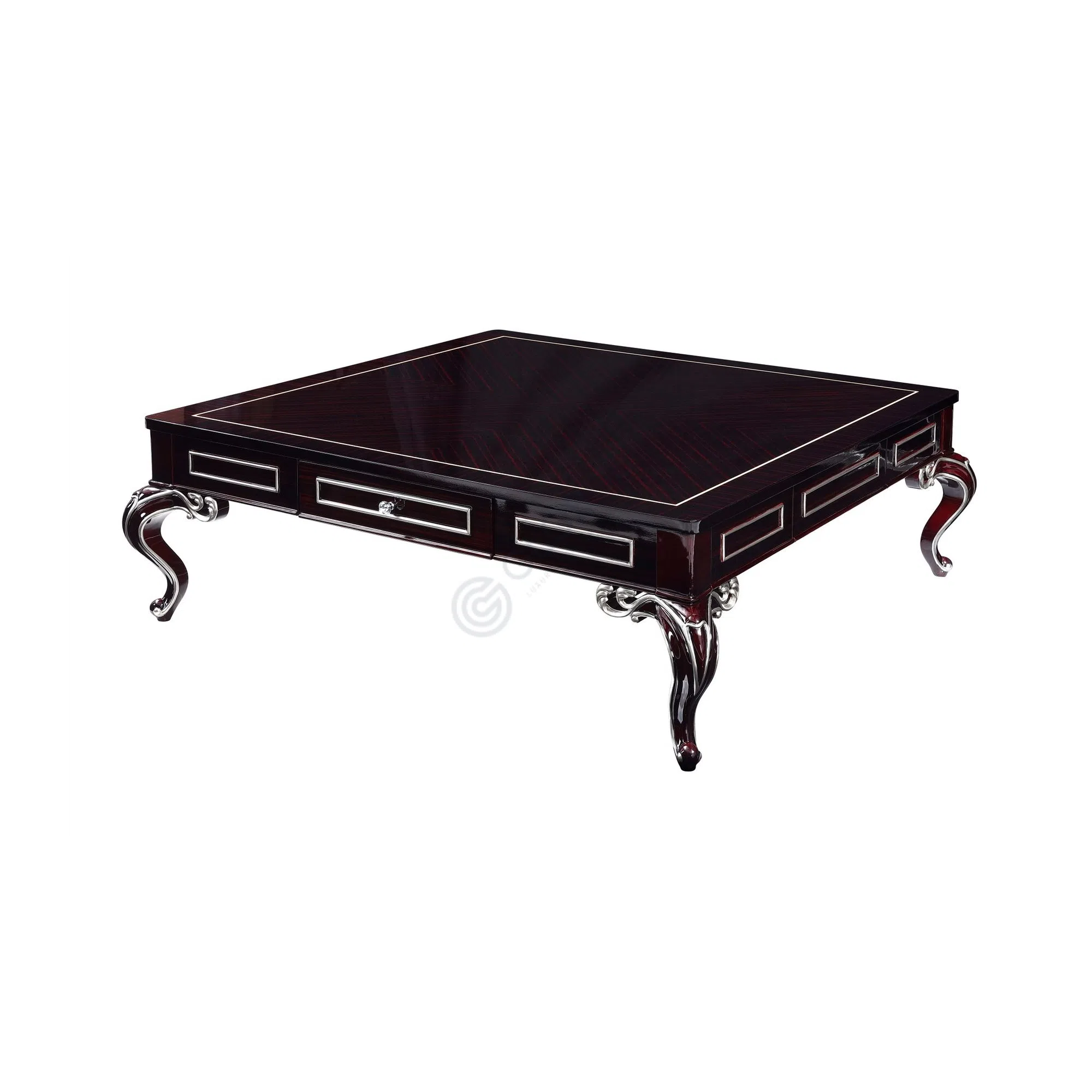 Introducing a stunning dining table, crafted from the finest solid wood and natural veneer materials. With its European classic style and warm mahogany color, this table will bring an elegant touch to any kitchen or dining room decor. Designed for both functionality and aesthetic appeal, this table is sure to be the centerpiece of your dining space. Its sturdy construction and smooth finish guarantee both durability and comfort for years to come.