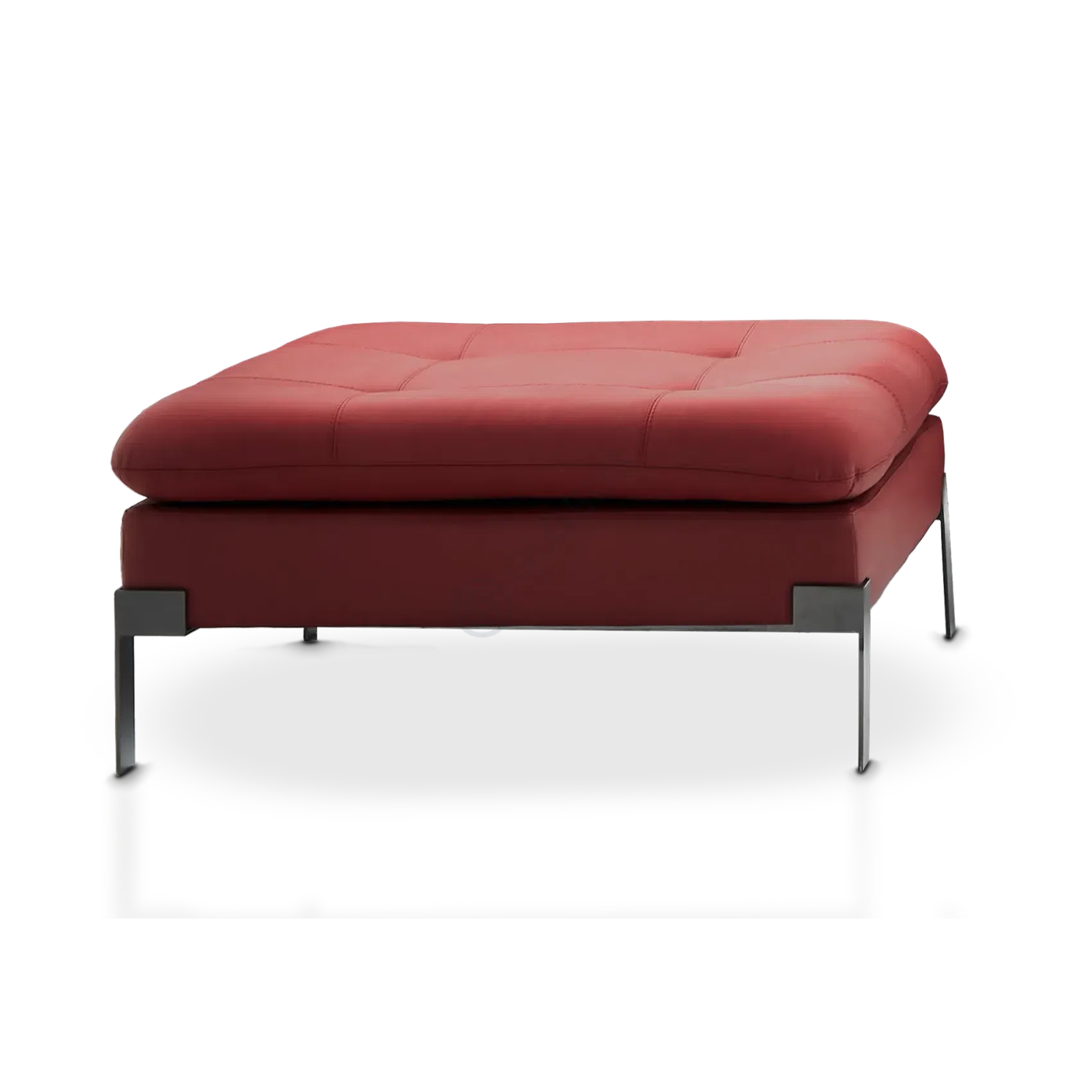The sofa rests on sleek legs made of stainless steel, adding a touch of minimalist style that complements its modern aesthetic. This piece is designed to be a focal point in a living room, combining premium materials with effortless style and comfort.