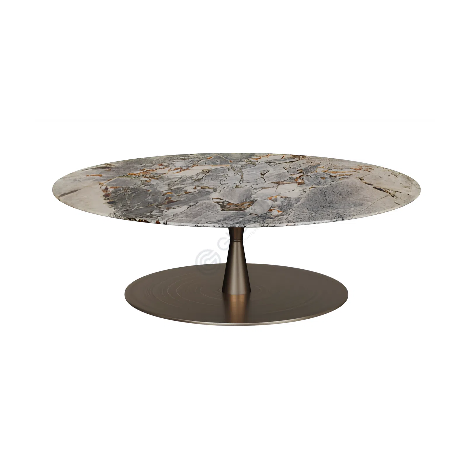 Crafted with a durable base, the table features a solid structure allowing for its unique shape. It boasts an elegant finish that imparts a sense of modern luxury and complements the table's graceful form. This finish highlights the smooth curves and balanced proportions.