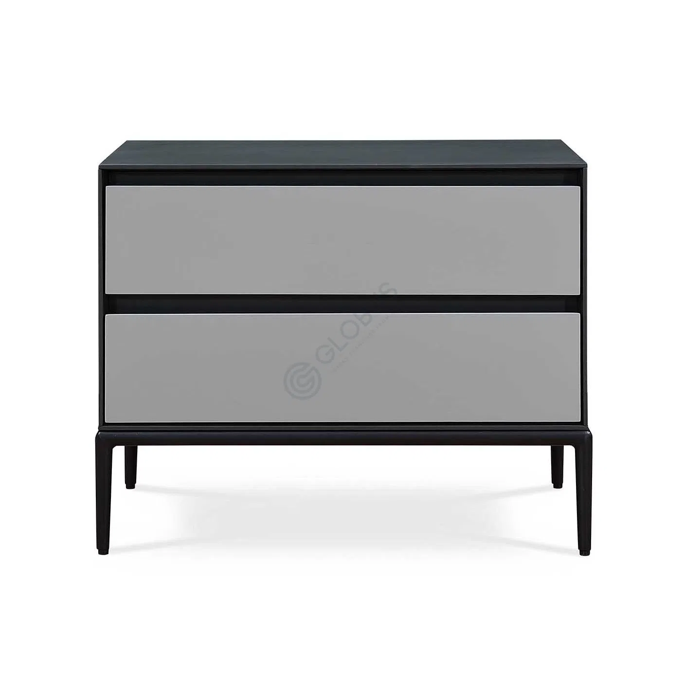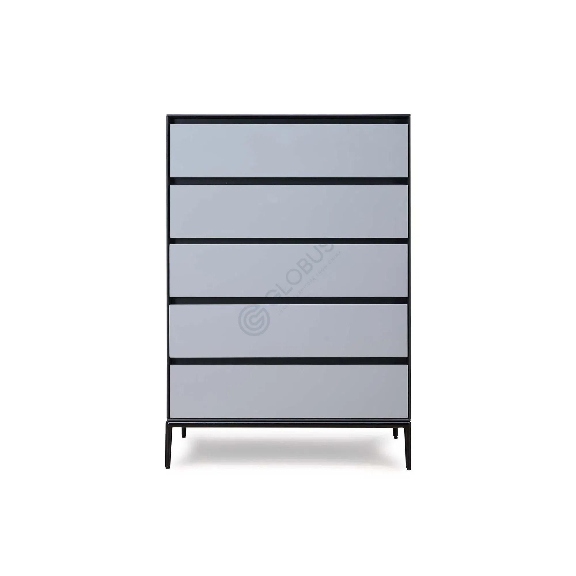Constructed from solid wood, plywood, and metal components, this stand combines durability with a refined aesthetic. The main structure and drawer fronts showcase quality craftsmanship, while the metal legs provide a light, elevated look consistent with modern design principles.