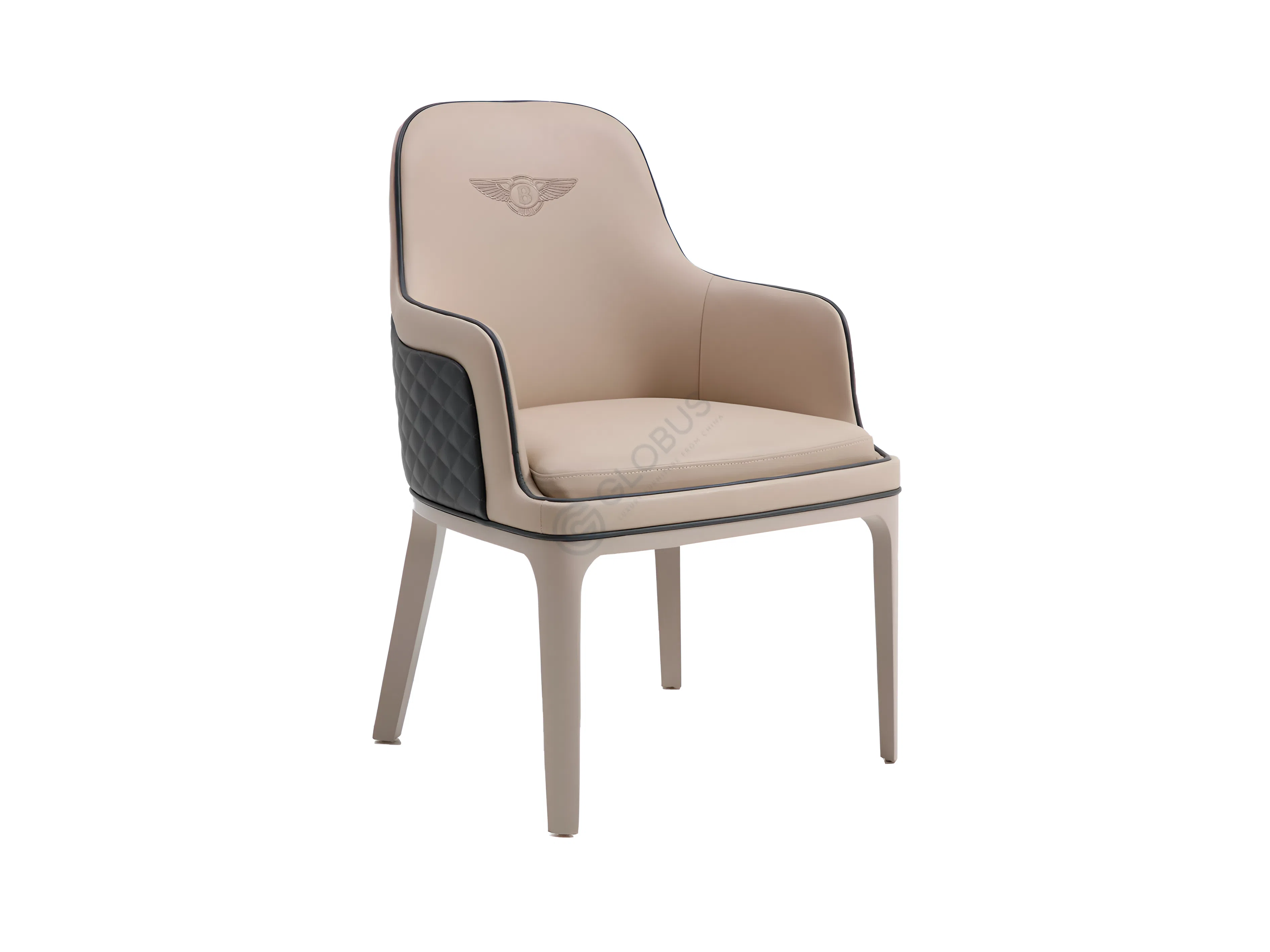 This modern bar chair combines refined proportions with a sophisticated dual-tone aesthetic. The ergonomically shaped seat features a high backrest and integrated armrests, providing a supportive and comfortable seating experience. The interior is upholstered in a smooth, light-toned textile, while the exterior displays a contrasting dark brown finish with classic diamond quilting, adding visual depth and texture to the piece.