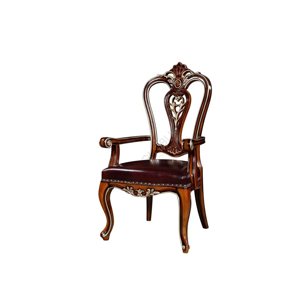 This elegant kitchen chair is a perfect combination of European classic style and durable materials. Crafted with beautiful brown leather and solid oak wood, it is both sturdy and stylish. Designed to enhance the beauty of your kitchen or dining room, it stands tall, adding sophistication and comfort to your space. The intricate details of this chair make it a perfect fit for an elegant home with a classic design. The solid wood frame provides exceptional strength, while the soft leather makes it comfortable to sit on.