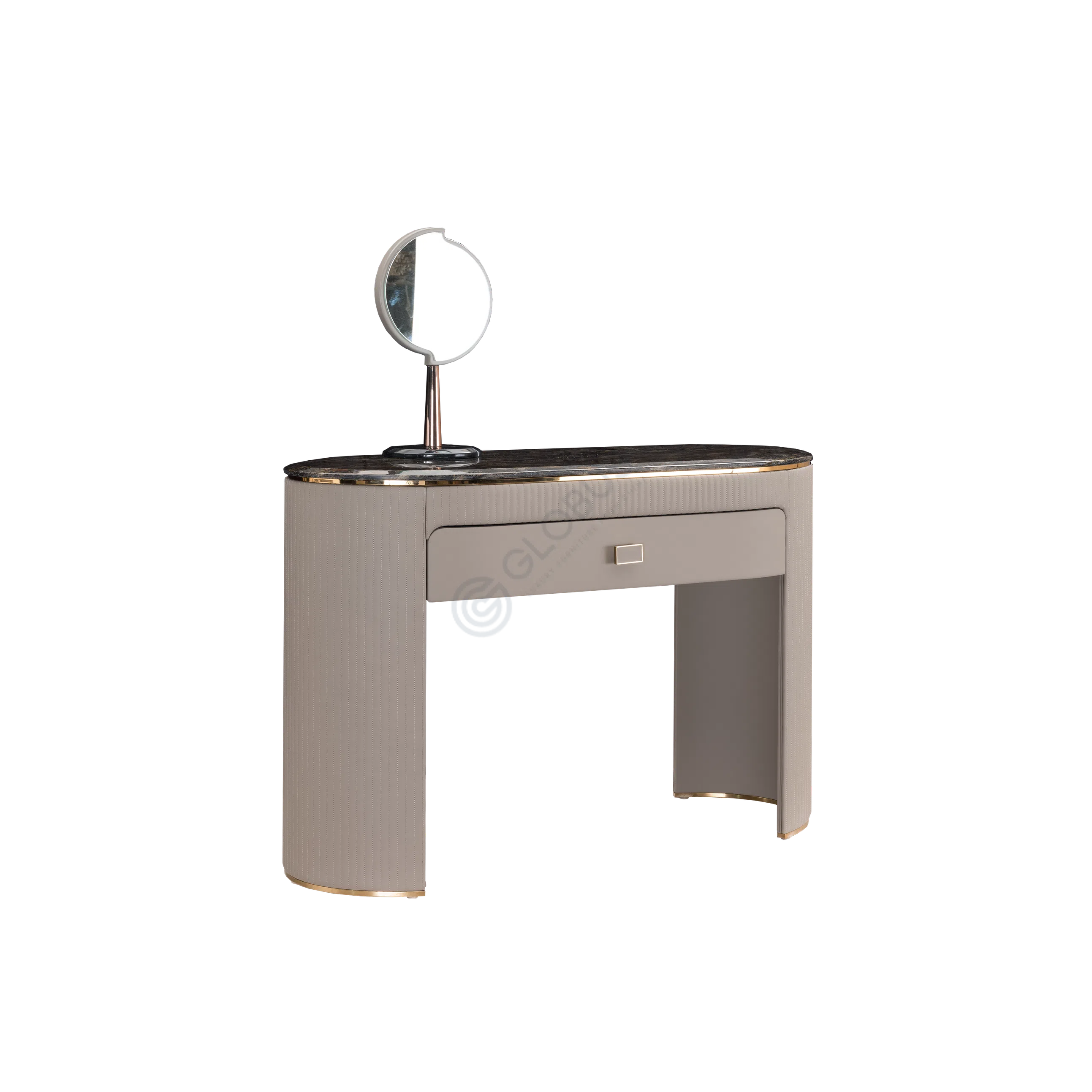 Introducing our exquisite modern bedside table, designed to elevate your bedroom space to new heights. This stunning piece effortlessly combines sleek stainless steel, luxurious microfiber leather, and the timeless elegance of natural marble.