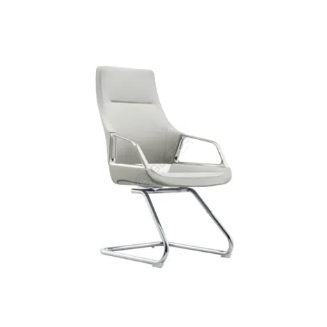 This modern office chair presents a sleek profile with clean lines, designed for contemporary workspaces. Its form combines elegant aesthetics with functional design, making it a refined addition to a home office environment.