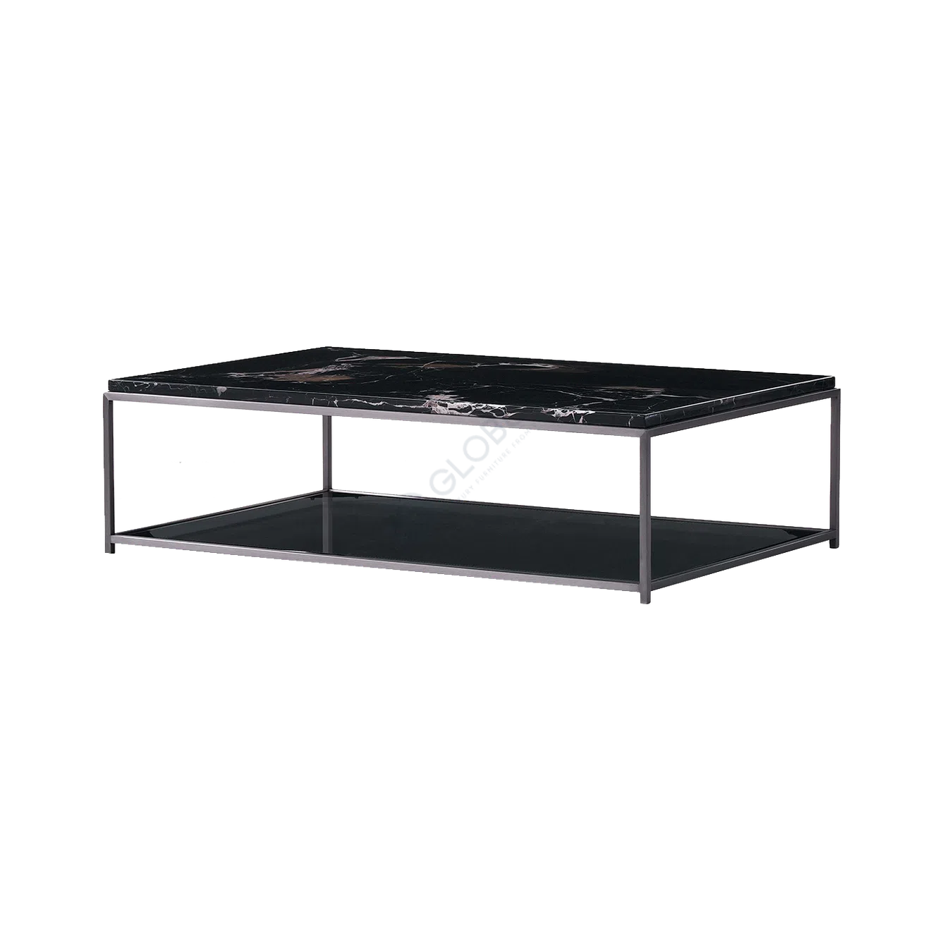 Designed for the living room, this side table serves as a functional accent piece. It can hold a lamp, books, or a decorative object, fitting neatly beside a sofa or chair. Its blend of natural stone and clean metal offers both beauty and practicality, enhancing the room with understated elegance.