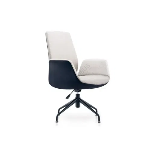 This office armchair presents a sleek, modern profile perfect for a sophisticated home office environment. Its design features a distinctive two-tone shell, combining a smooth light-colored upper section with a contrasting darker base, creating a clean and contemporary aesthetic. The elegant lines of the seat and backrest offer both visual appeal and supportive structure.