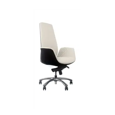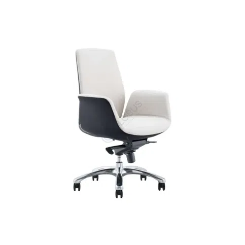 Crafted with a combination of materials, the chair features an outer shell made from durable PU, providing structural support and a distinct visual contrast. The seating surface, including the integrated armrests and backrest, is plushly upholstered, offering a soft and supportive experience during extended work sessions.