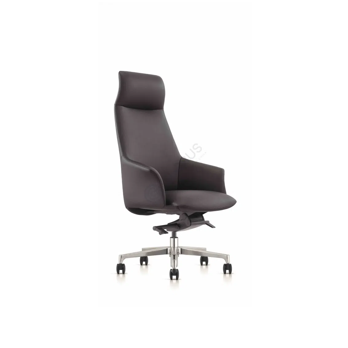 A modern office armchair designed for comfort and style in a home workspace. The chair features a beautifully shaped seat and back, upholstered in smooth leather that provides a refined touch and comfortable support. Its silhouette is clean and contemporary, fitting seamlessly into a variety of modern interiors.